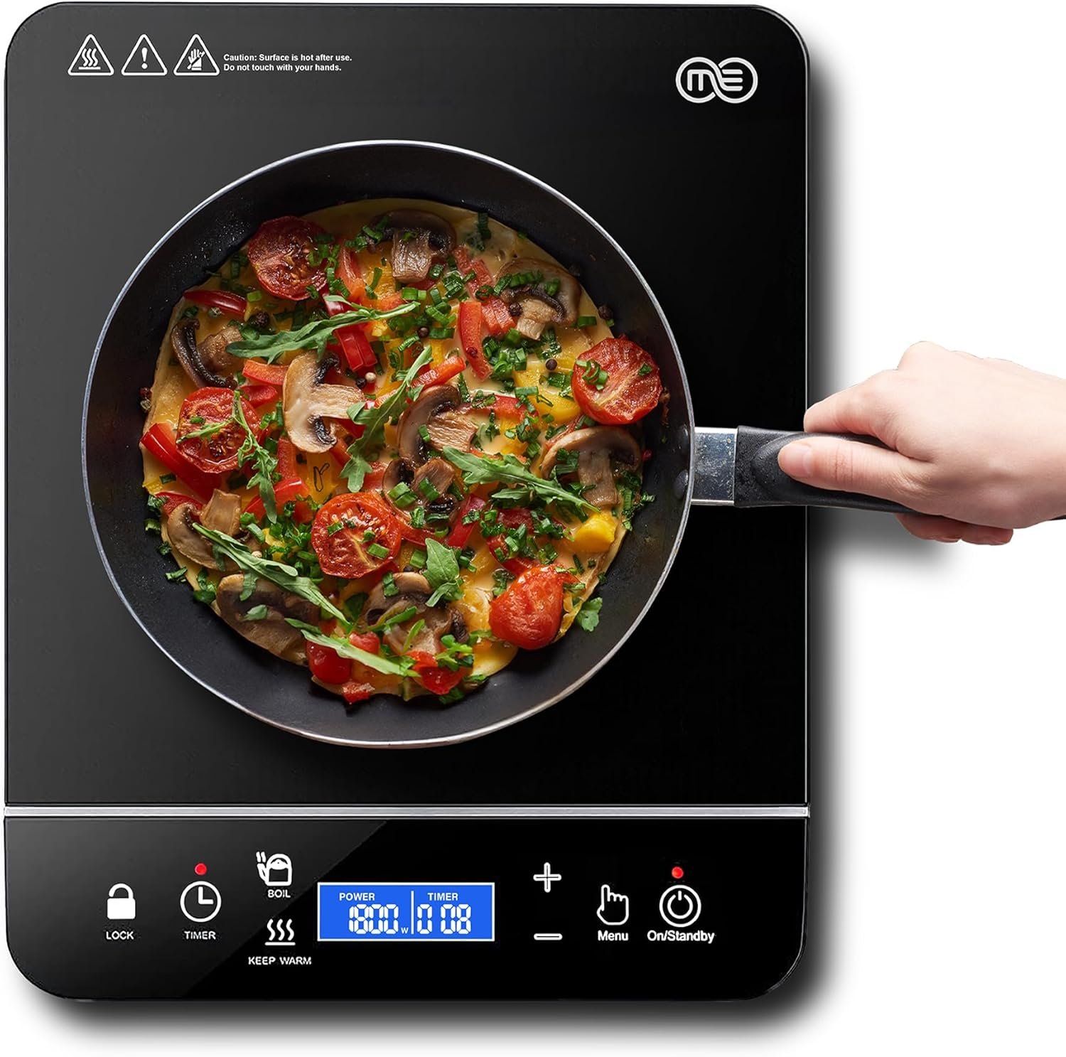 Energy Efficient Cooking: The OMEO induction burner heats cookware directly, reducing energy waste and cooking time. It uses less energy than traditional stovetops, making it an eco-friendly and cost-effective choice for modern kitchens.