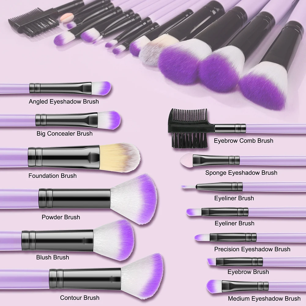 OMGD Makeup Brushes Purple Set For Cosmetic Soft Cute Beauty Foundation Powder Eyeshadow Concealer Blending Makeup Brush Set