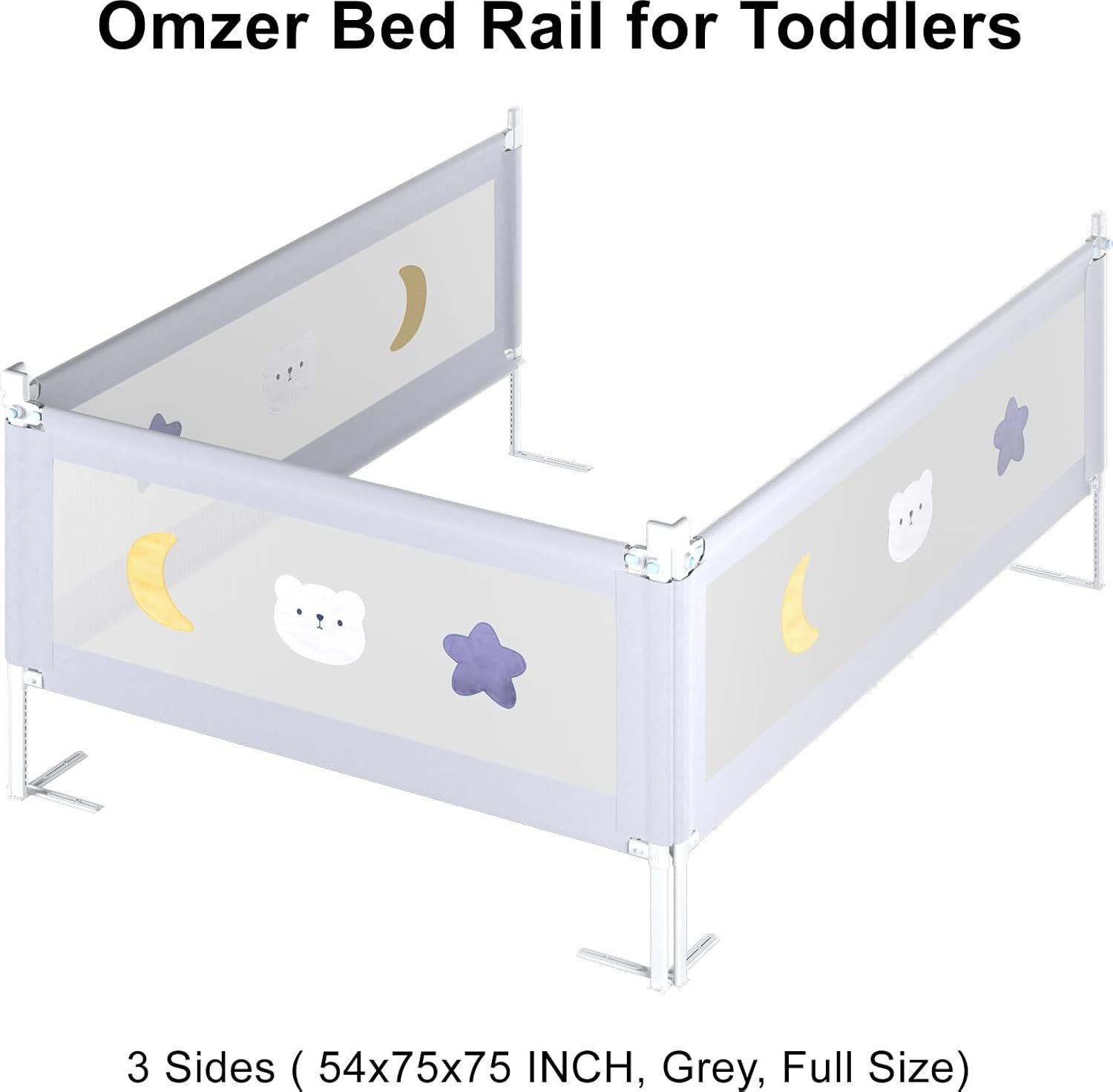 omzer Bed Rail for Toddlers – (3 Pack) Toddler Bed Rails with Double Child Lock – Bed Rail for Baby Kids with Pattern – Height Adjustment Guard Rails for Full Size Bed – 3 Pack, 54x75x75”