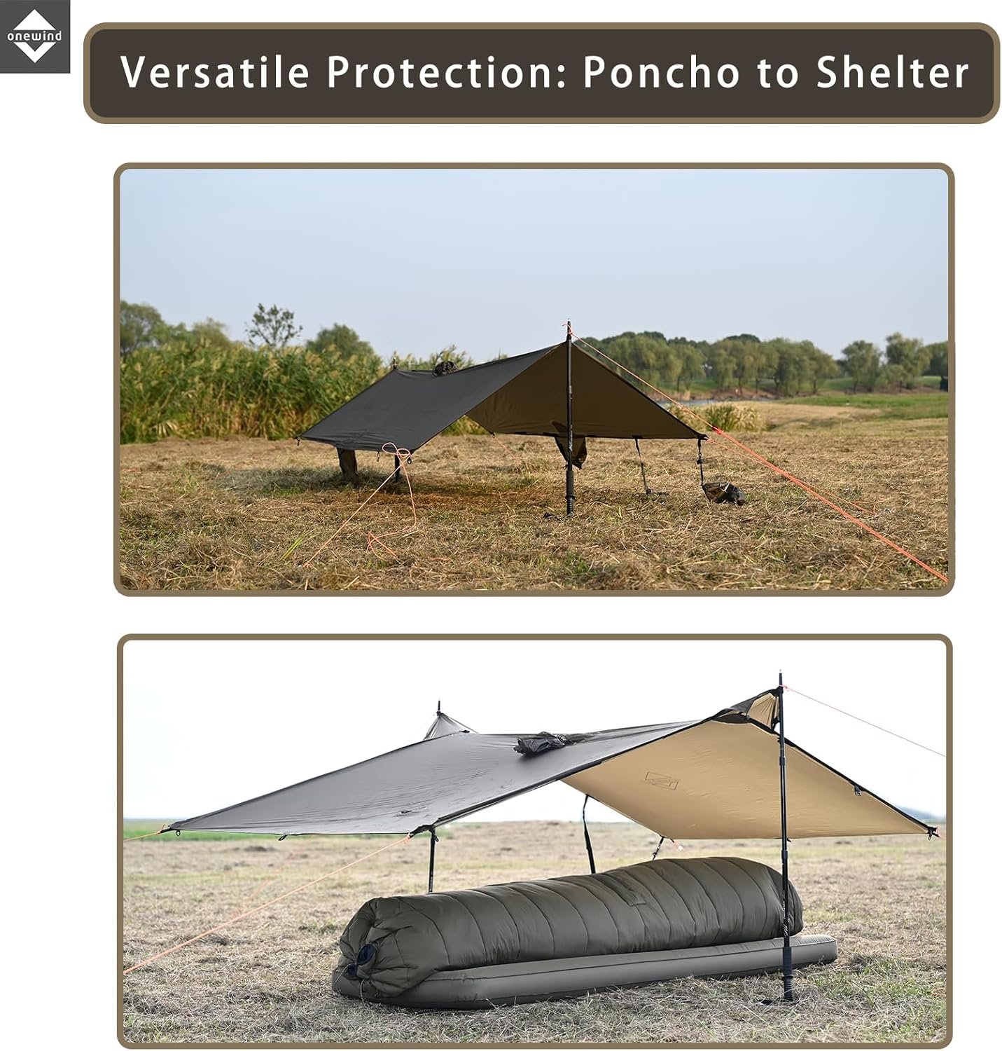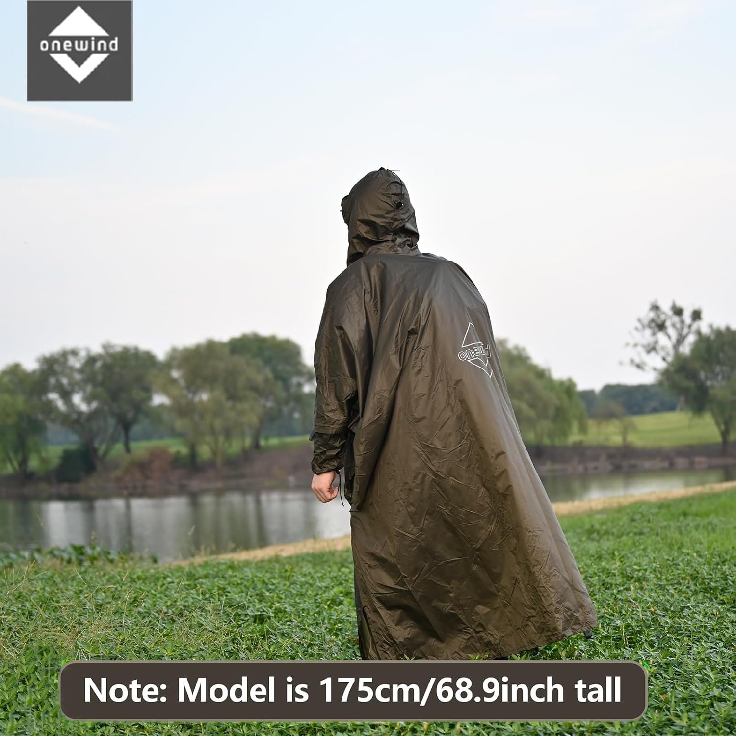 onewind Hooded Rain Poncho, Silnylon Rain Coat Versatile Survival Shelter Waterproof Breathable Lightweight Poncho