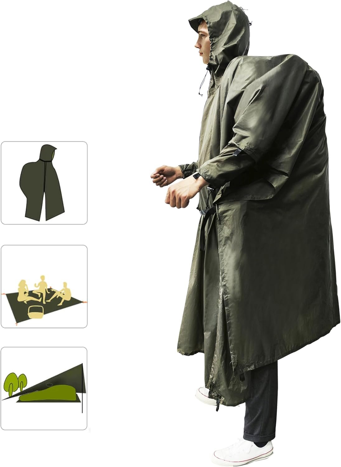 VERSATILE AND MULTIFUNCTION. When you’re not wearing it, this heavy-duty rain poncho can be converted into a tarp, groundsheet, backpack rain cover or a survival shelter in seconds.