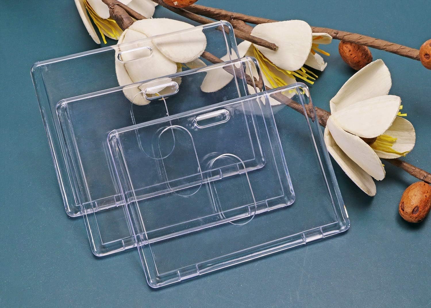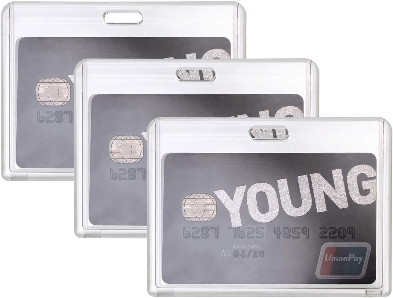 ONLYKXY 3 Pack Office Badge Holder, Horizontal Style, Hard Plastic ID Card Cover, Clear Name Card Holder