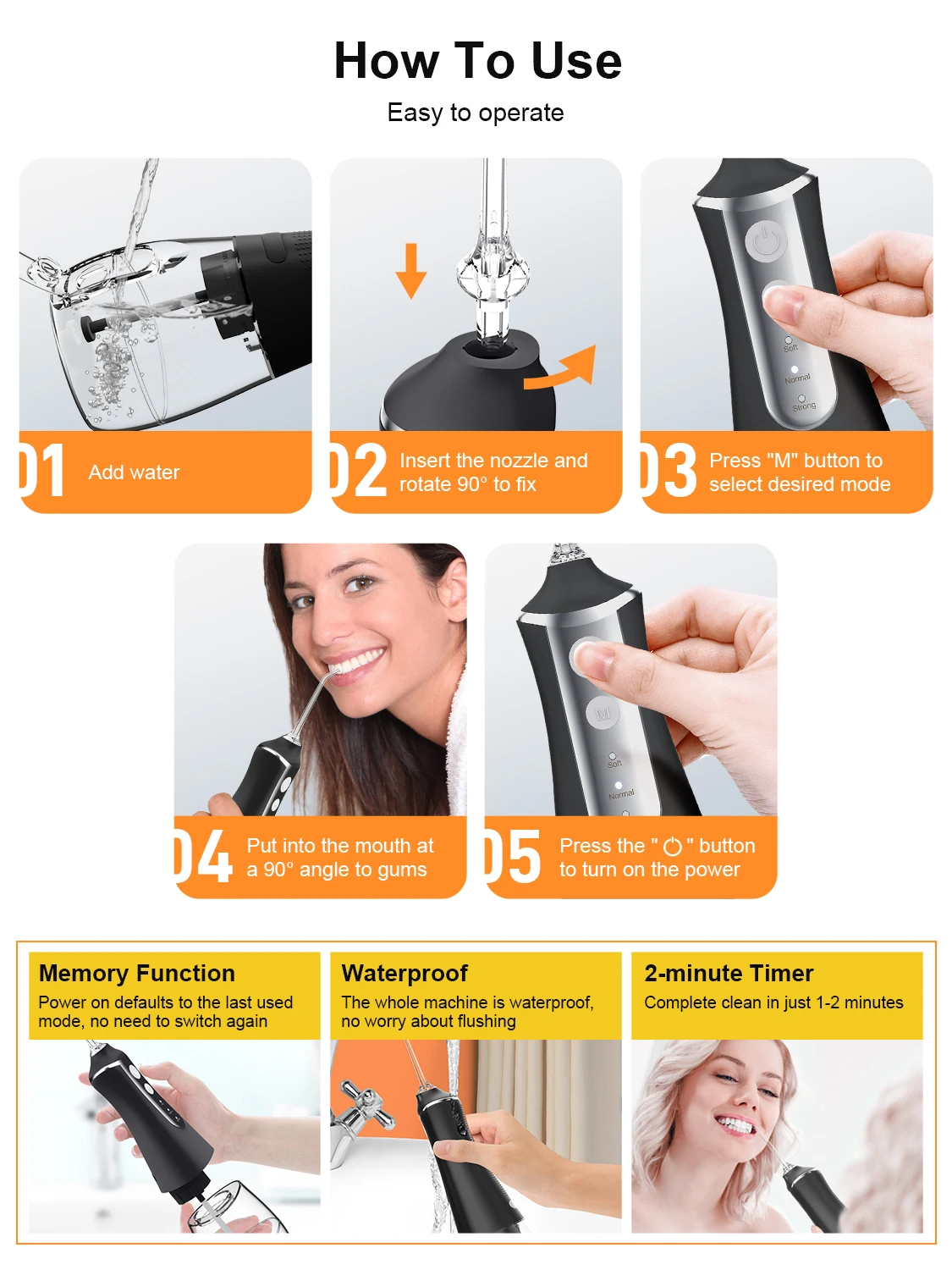 2 reviews for Oral Irrigator Wireless Electric Interdental Cleaner For Teeth Gums Dental Care 3 Modes 5 Replacement Nozzles USB Rechargeable S