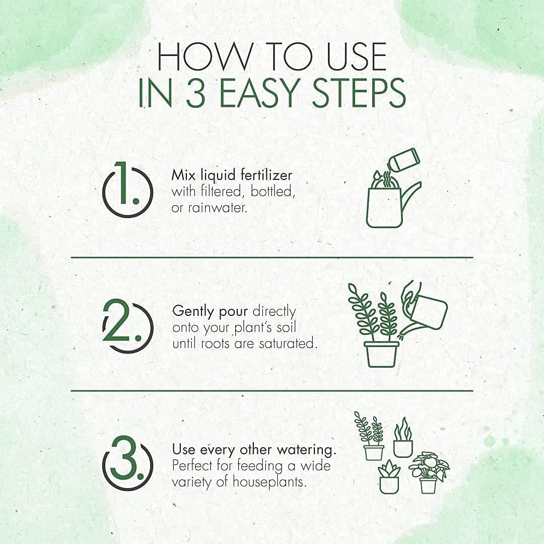 Houseplant fertilizer that contains 100% natural organic ingredients plus high quality, urea-free balanced mix of macro and micronutrients that are safe to use on live plants