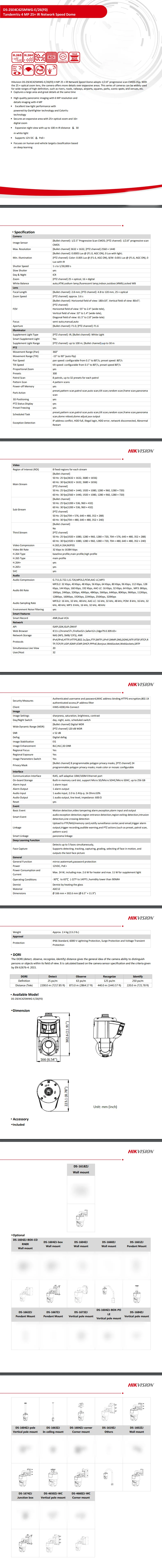 Original Hikvison DS-2SE4C425MWG-E/26(F0) TandemVu 6+4MP 25X Optical Zoom Colorful&IR Speed Dome PTZ CCTV Surveillance IP Camera