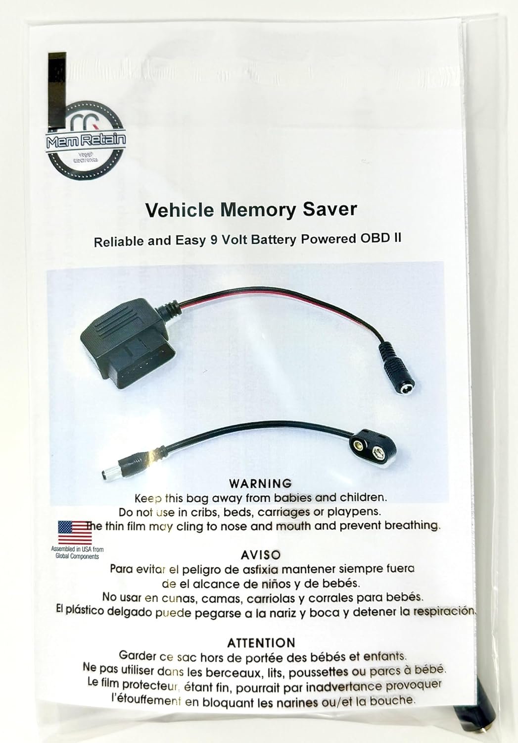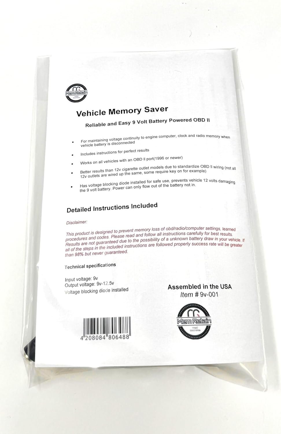 Original Mem Retain Brand 9 Volt Battery Powered OBD ll Connector Vehicle Memory Saver Reliable and Easy