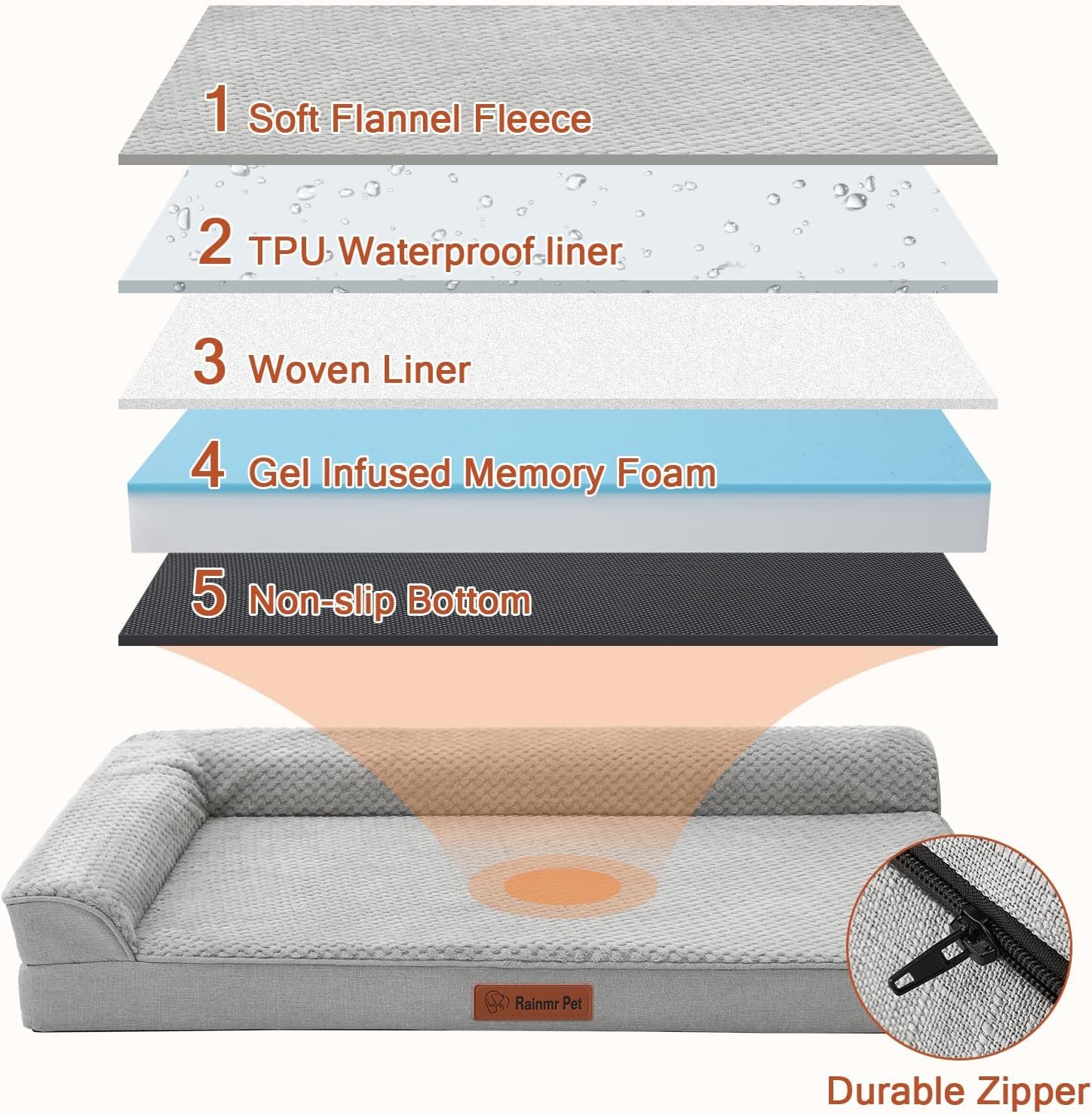 Waterproof Inner Liner and Removable Machine-Washable Cover: The bed is equipped with a waterproof inner liner that prevents liquids from seeping into the core of the mattress, ensuring it stays dry and clean even in case of spills or accidents.Additionally, the cover is removable and machine-washable,making the cleaning process hassle-free for pet owners.