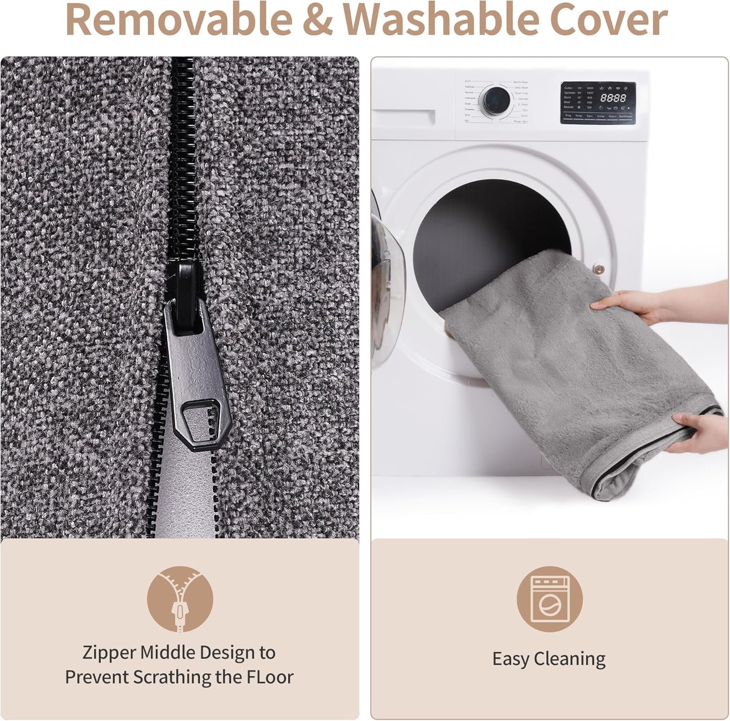 Removable & Washable Cover: The waterproof and machine-washable cover ensures easy cleaning and maintenance. Simply remove the cover, toss it in the washing machine, and keep your pet’s bed fresh and hygienic.