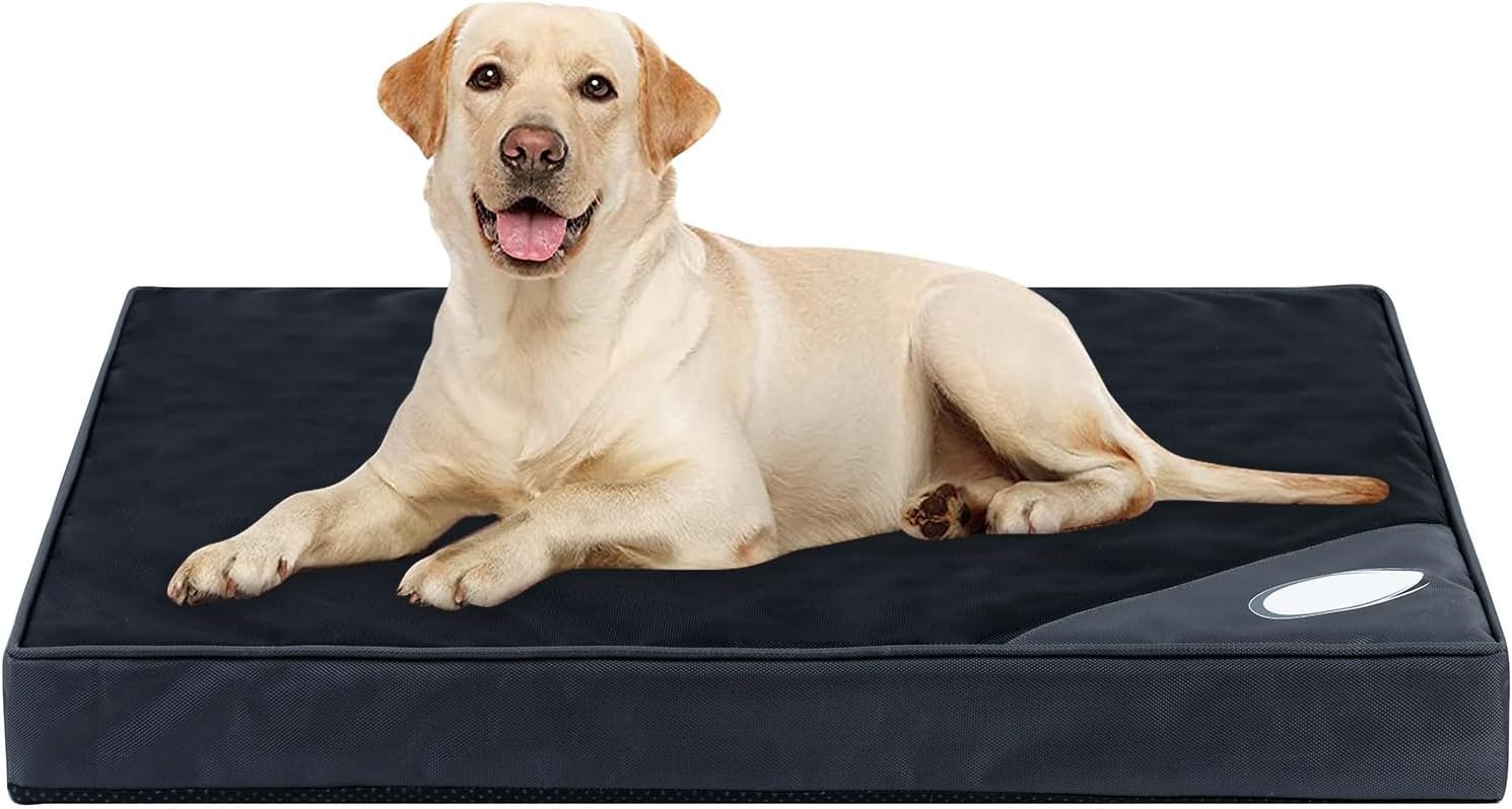 Orthopedic Outdoor Waterproof Dog Beds for Extra Large Dogs, Washable Crate Bed with Egg Crate Foam Pet Bed Mat and Removable Oxford Fabric Cooling Cover,45″x 32″, Black