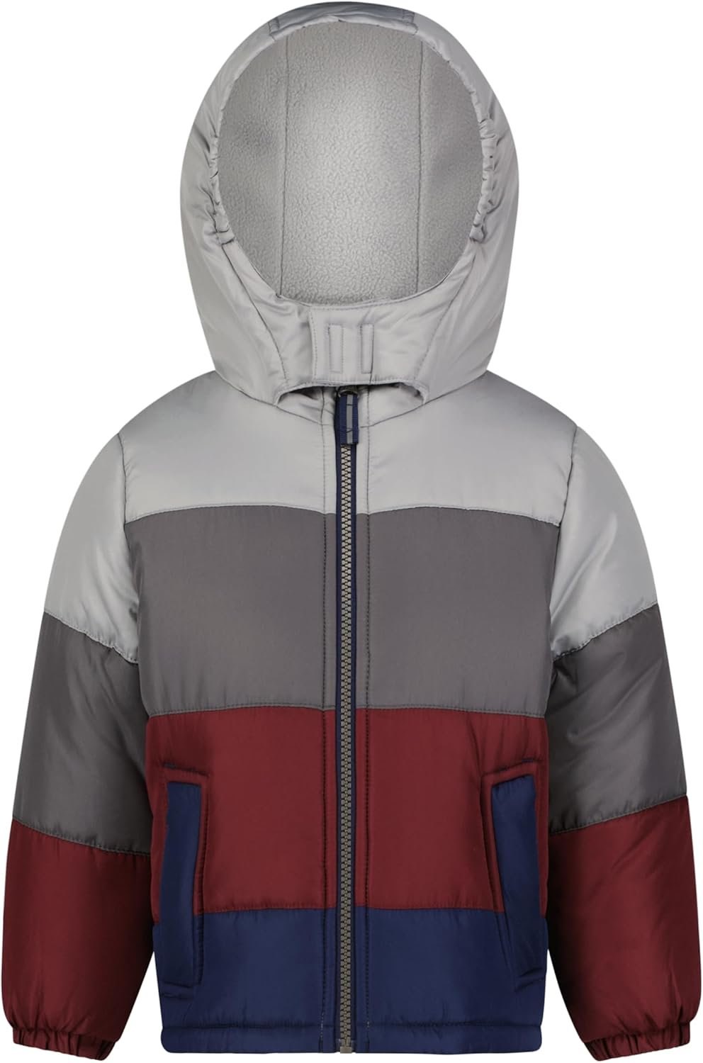 Bundle up your child for winter with this boys’ heavyweight puffer coat, designed to provide ultimate warmth and comfort on the coldest days. This cozy winter jacket is fleece-lined for extra insulation, while the durable, weather-resistant outer shell offers protection from snow, wind, and light rain. The unique hood design features a velcro-secured neck flap to keep his neck and chin shielded from the cold, perfect for frosty outings. With its secure zipper closure, soft fleece-lined pockets, and eye-catching color-block design, this puffer coat makes an excellent choice for winter activities like sledding, snowball fights, and everyday play in chilly weather. Whether for school, outdoor play, or casual wear, this puffer jacket is an excellent choice for keeping your child cozy during cold days. Osh Kosh B’Gosh Outerwear combines classic design with ultimate warmth, perfect for keeping little adventurers cozy all season long. Made with high-quality, durable materials, these jackets and coats are built to withstand all kinds of weather—whether it’s a brisk fall day or a snowy winter morning. Featuring soft linings, insulated layers, and easy-to-use zippers, our outerwear ensures comfort and mobility without sacrificing style. With a range of fun colors and playful patterns, each piece is designed to keep kids looking great while staying protected from the elements. Plus, thoughtful details like fleece-lined pockets and hoods add an extra touch of coziness, making it the perfect go-to for active kids. Designed for play, made to last—Osh Kosh B’Gosh Outerwear is ready for all of life’s outdoor adventures!