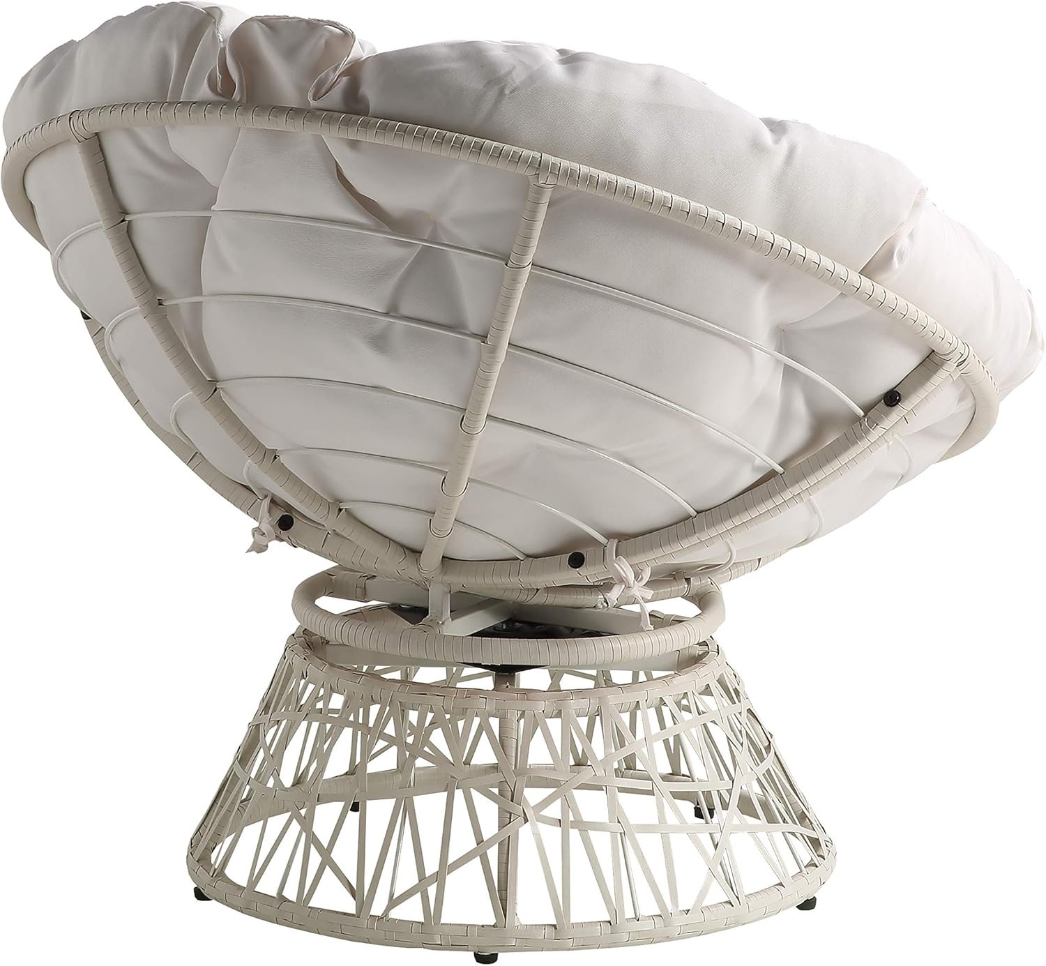 OSP Home Furnishings Wicker Papasan Chair with 360-Degree Swivel, White Frame with White Cushion