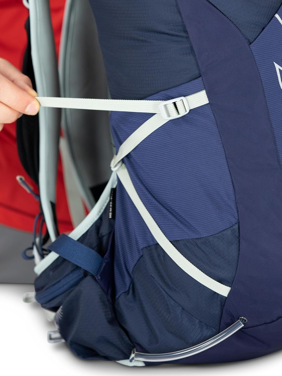 Customers find this backpack excellent for day hikes and cycling trips, with adjustable fit features and ample storage compartments, particularly noting the hip-belt pockets for small items. The backpack is well-built with sturdy zippers and materials, and customers appreciate its weight distribution that takes pressure off the shoulders. The design receives positive feedback for its sleek appearance and typical Osprey quality. Customers have mixed opinions about the straps, with some finding them perfectly functional while others mention they get in the way.