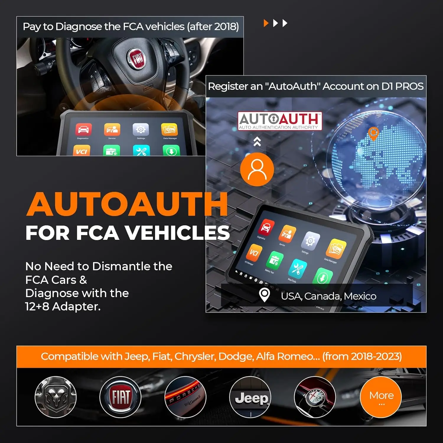 The OTOFIX D1 PRO automotive scanner provides access to secure visit FCA vehicles (for Fiat, Chrysler, Dodge, and Alfa Romeo 2017 later) & Renault models in North American Regions (the USA, Canada, and Mexico). It empowers you to perform diagnostic functions without restriction like bi-directional tests, clearing fault codes, calibrations, etc.(NOTE: The FCA Autoauth gateway unlocking function in North America is not available for use on OTOFIX devices. When entering this function, the device will prompt: