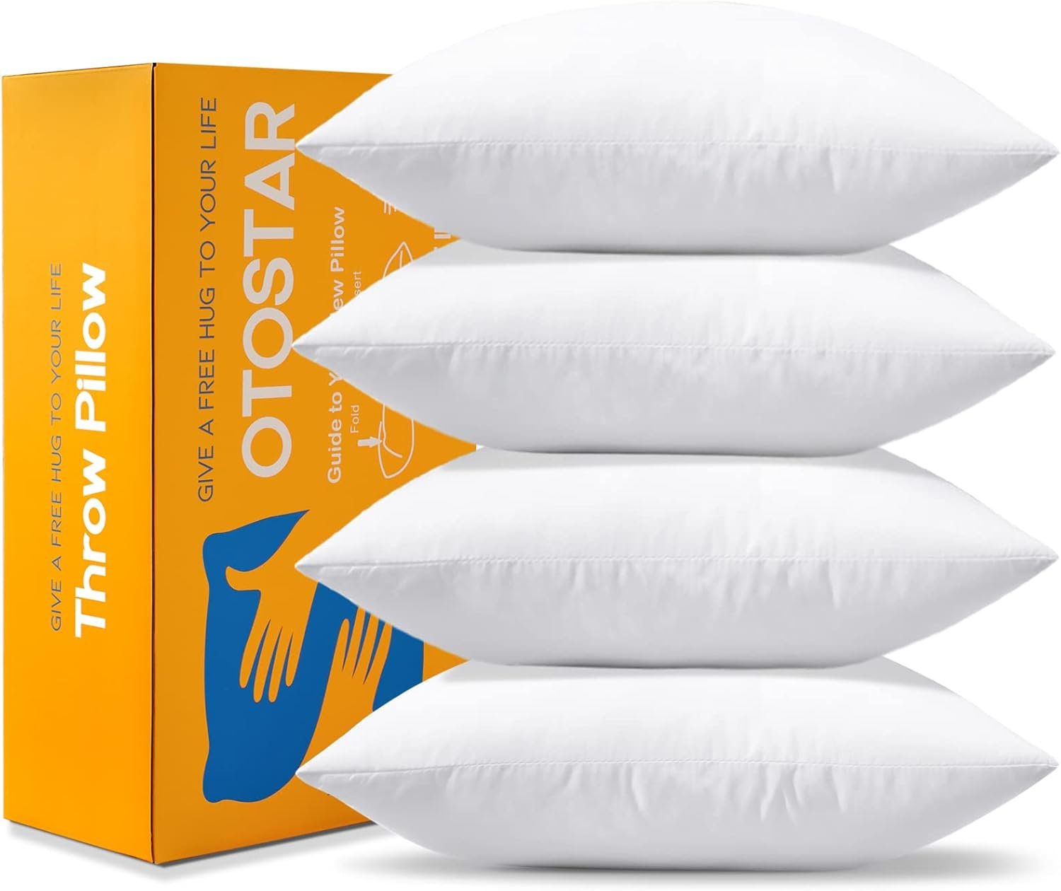 OTOSTAR Pack of 4 Throw Pillow Inserts, 18 x 18 Square Cushion Inner Soft Fluffy Plump Stuffer Cushion Pads White Decorative Pillow Inserts