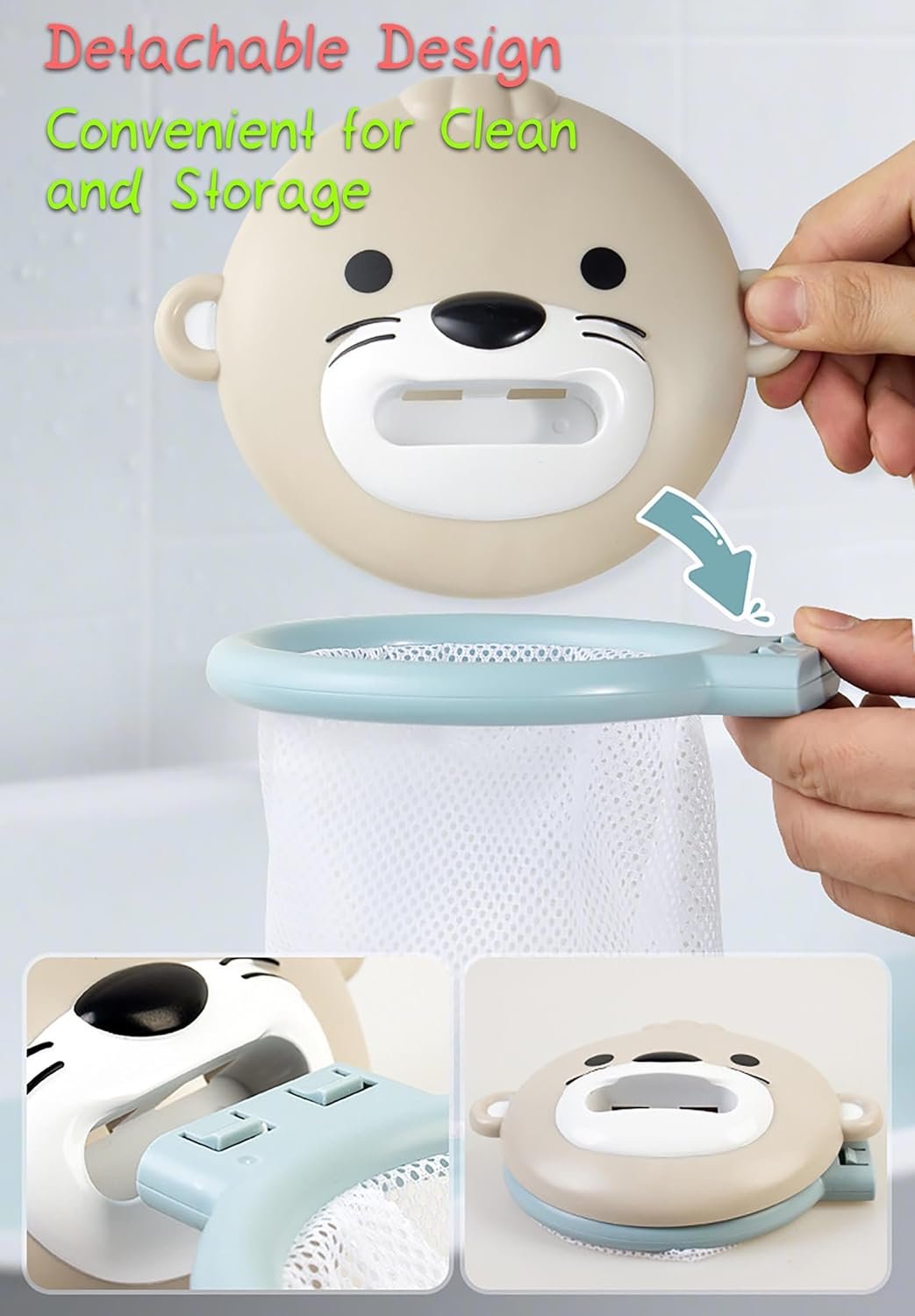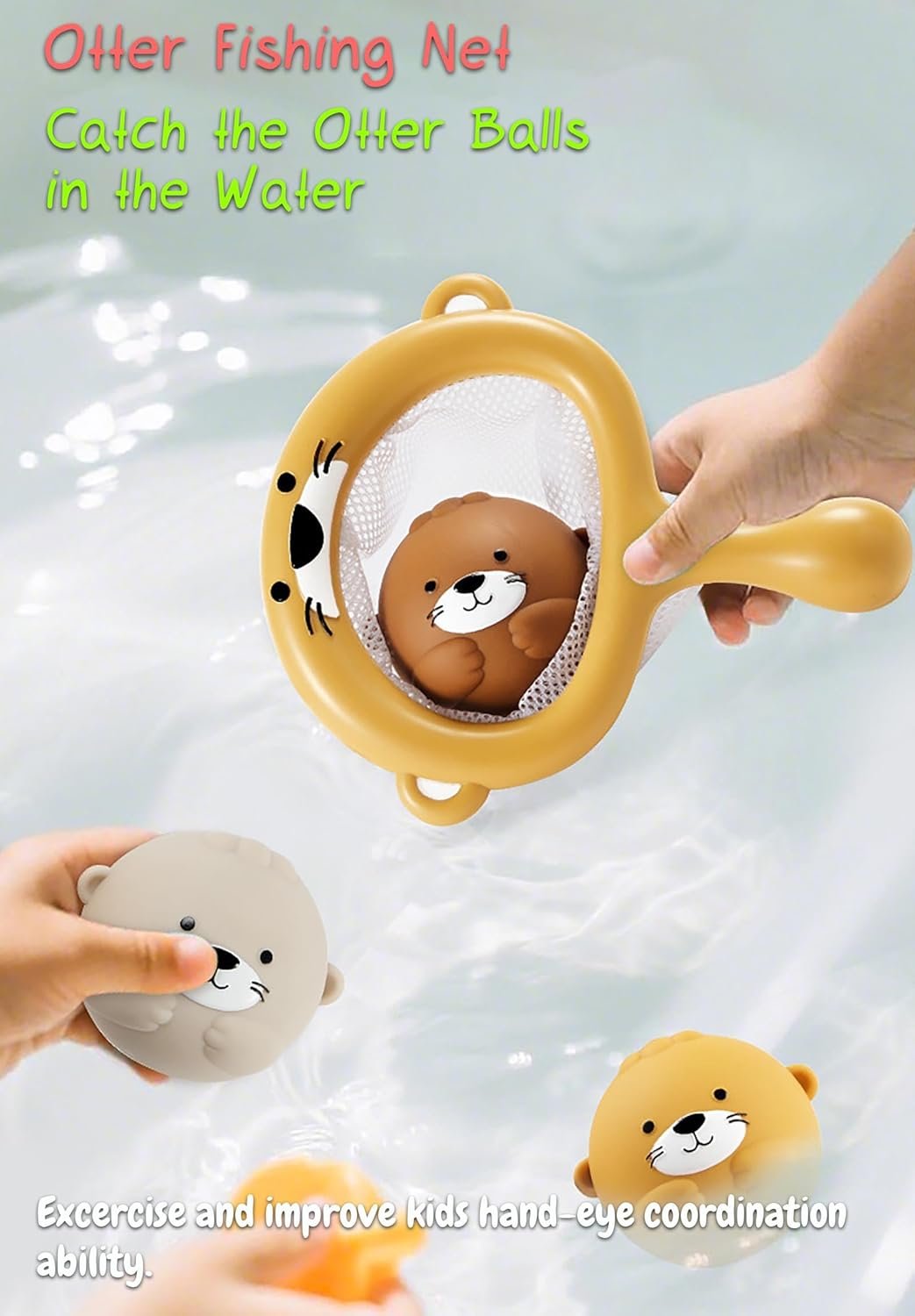 Otter Fishing Net: Both the otter fishing net and otter balls come in the suitable size for kids, even little babies can hold or grasp these toy easily. During play, children’s hand-eye coordination can be exercised and improved.