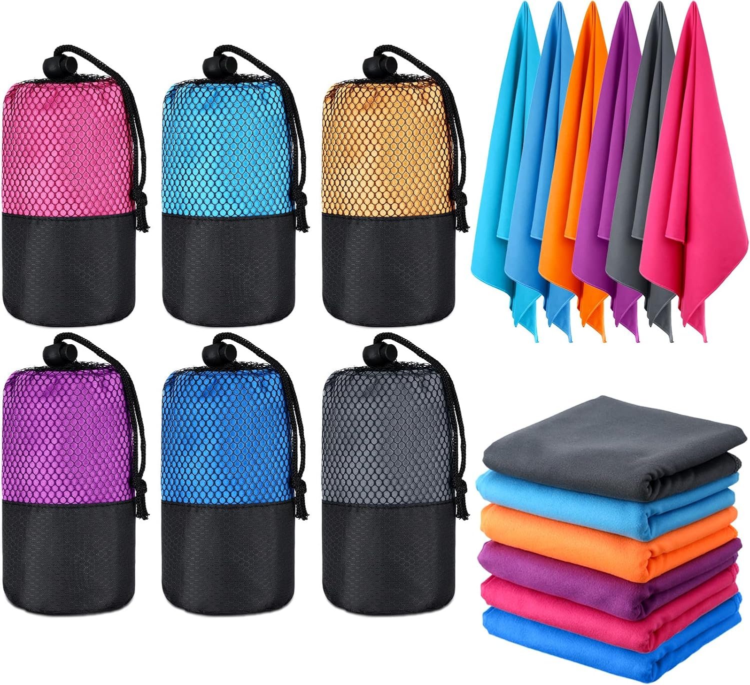 Oudain 6 Pieces Quick Dry Travel Towel Bulk, Microfiber Beach Towel with Bag Compact Soft Trip Towel Lightweight Adults Towel for Camping, Gym Beach Swimming Yoga, 20 x 39 Inches (Classic Color)