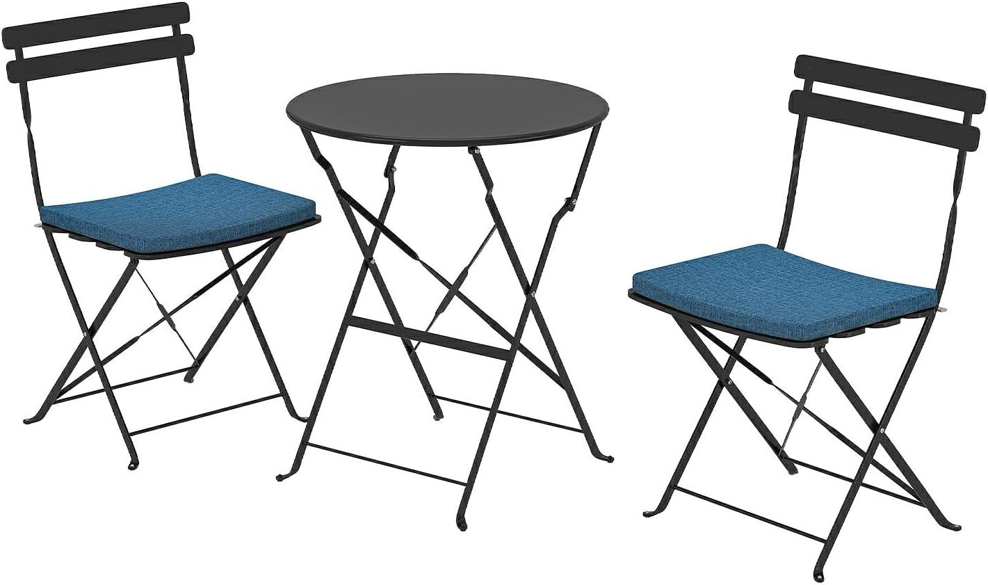 Outdoor Bistro Set w/2 Cushioned Chairs & Black Metal Folding Patio Furniture Set 3 Piece & Kitchen Table,Perfect for Front Porch,Small Balcony & 2-Person Dining Lightweight & Easy Storage