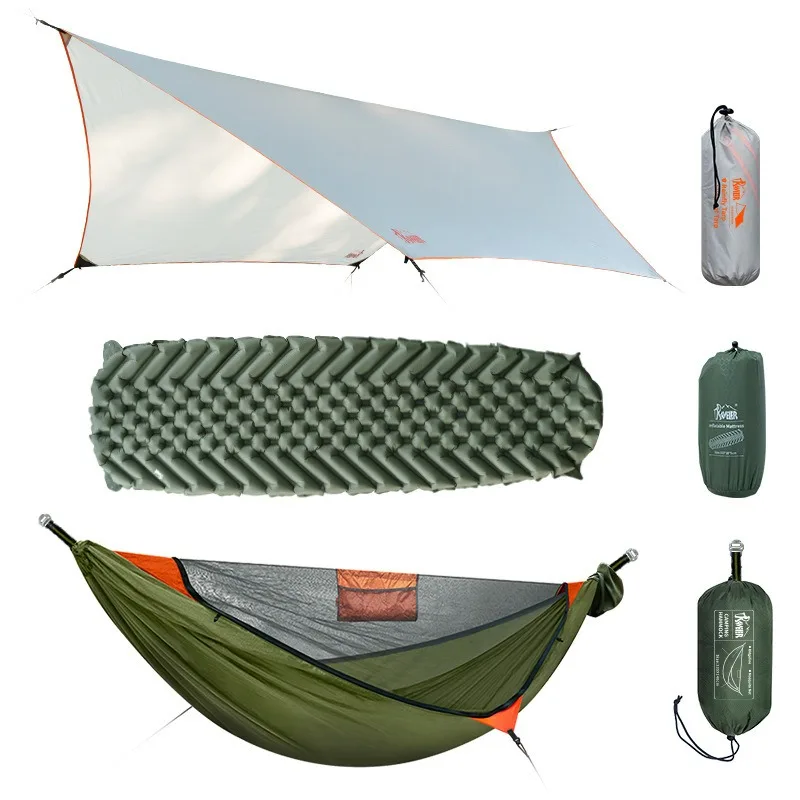 Outdoor camping 3-in-1 hammock set, ridge rope increased anti rollover, Bushcraft quick opening mosquito proof hammock