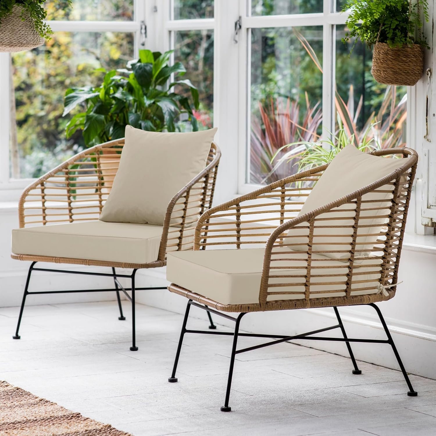 Easy Assembly & Care: This outdoor furniture cushions arrives in a compressed package for simple and rapid assembly, without the need for any special tools. Both seat and back cushions have removable covers, making daily cleaning convenient. The covers can be machine washed or hand washed; air drying is recommended