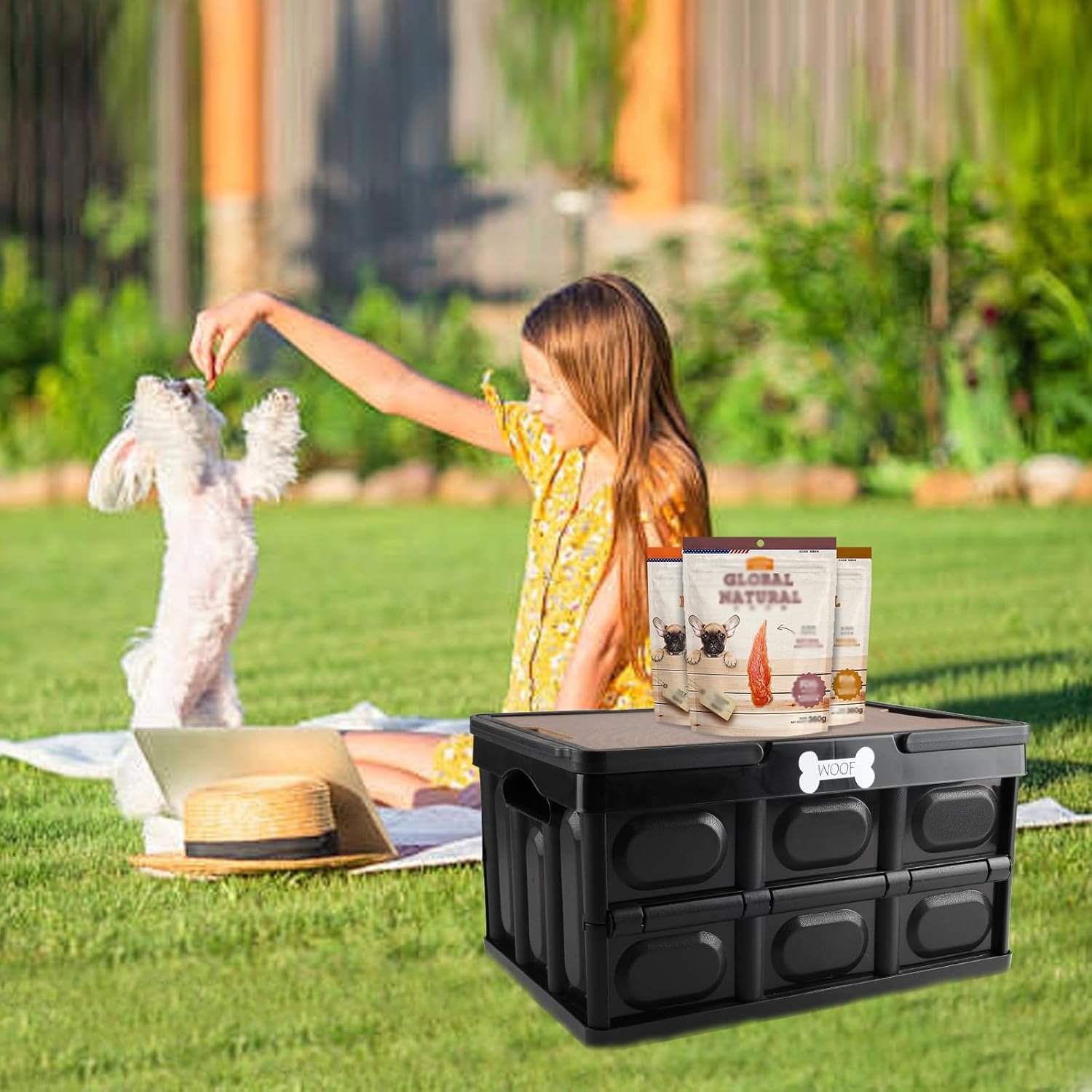 【Portable Dog Stuff Organizer】:The dog stuff crate with handles makes you carry it easily,can be used as an Camping Essentials storing,RV trip,Picnic,swiming,Training Snack,Training Toys stroage.