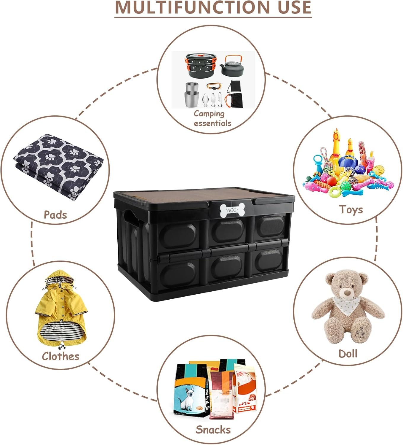 【Wide Application】Brabtod folding toy storage bins organizer is versatile,not only to be used as dog toy storage pet stuff storage,also can be used for Trunk organization,Dog Camping Essentials Storage,Outdoor Storage Box, Dog Toy storage,Pet Snack organizer,Pet travel crate.