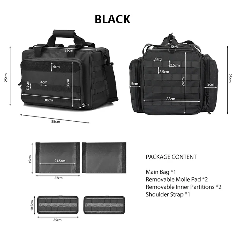 Package Content:Main Bag *1;Removable Molle Pad *2;Removable Inner Partitions *2;Shoulder Strap *1;