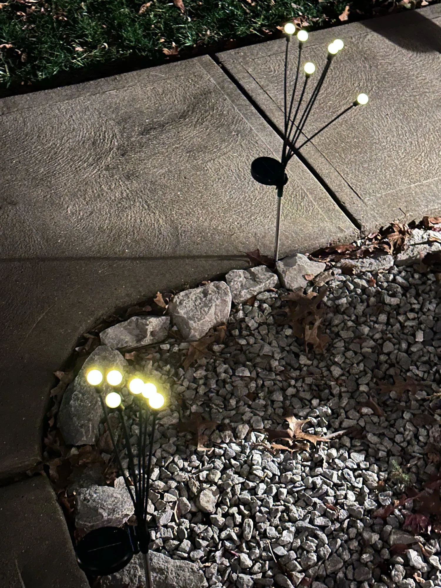 FEATURES: ã€SWAYING WHEN WIND BLOWS,IMITATE REAL FIREFLY】The most unique solar decorative lights in the market, our solar swaying light is propped by very soft & flexible wires, so the light sways when the wind blows, exactly like a cluster of firefly flying in the dark ã€NEWEST VERSION – BETTER SWAY EFFECT】Upgraded version with specialized iron wire and heavy-duty bulb base, specialized iron wire has higher flexibility which provides a larger sway angle, heavy duty bulb base increase sway momentum so the solar light sways better to imitate real firefly ã€UNIQUE & UNSEEN ANYWHERE ELSE】 Super unique solar lights and unseen anywhere else, and the pictures don’t do them justice, you need to check the video on the product page to see how the firefly “FLYING†in the dark ã€NO INSTALLATION & WIRE NEEDED】 Super easy to use because no cables or plugs are needed, just plant the solar lights in your garden, and turn the switch on to enjoy the most beautiful solar decorative lights in the world