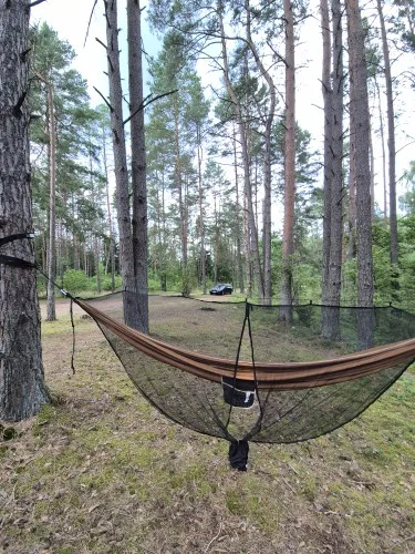 I can’t post a photo because the net was installed at night, but the test was passed. It’s important to install the net correctly so that it doesn’t touch the bottom of the hammock, and for this, your hammock must be set up correctly and not sag.