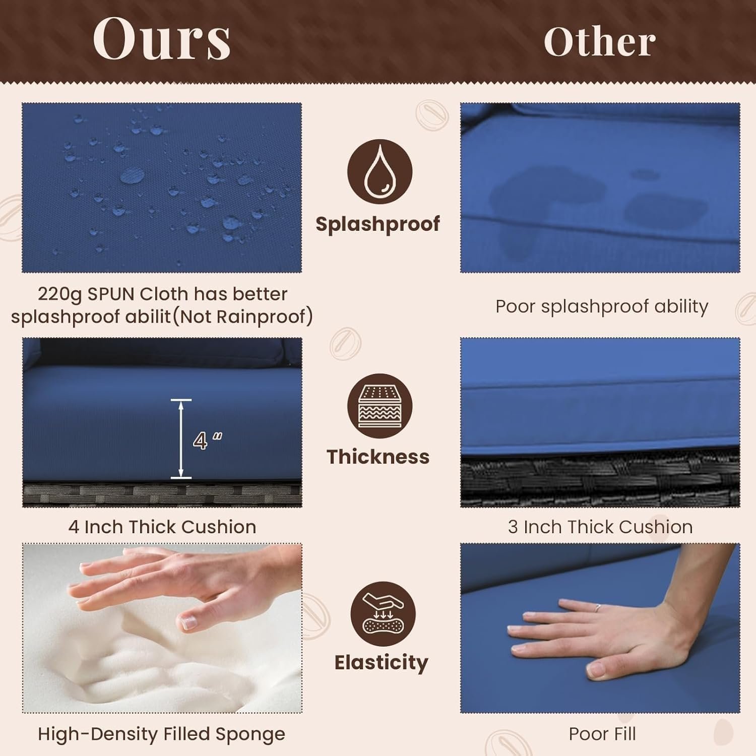 Weather Rattan Wicker Material: with weather rattan wicker, this outdoor patio furniture set withstands exposure to sun, rain, and wind, maintaining its attractive look while providing easy maintenance for year-round use.