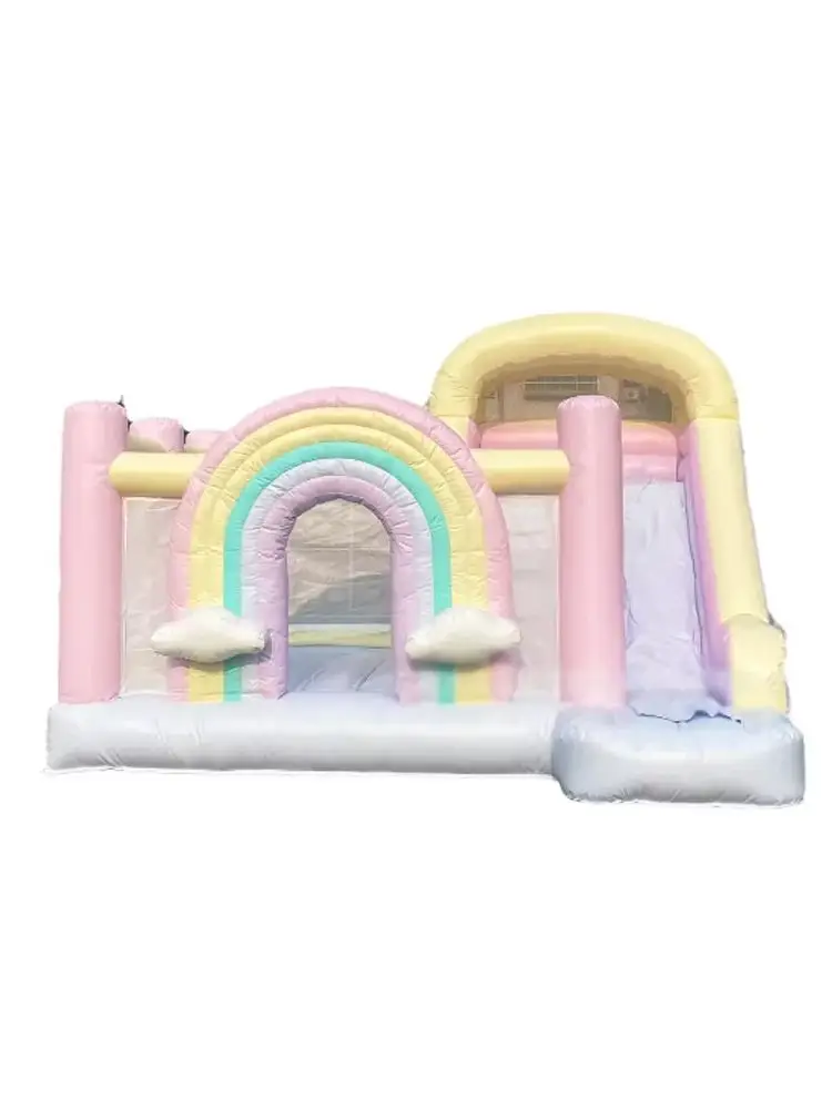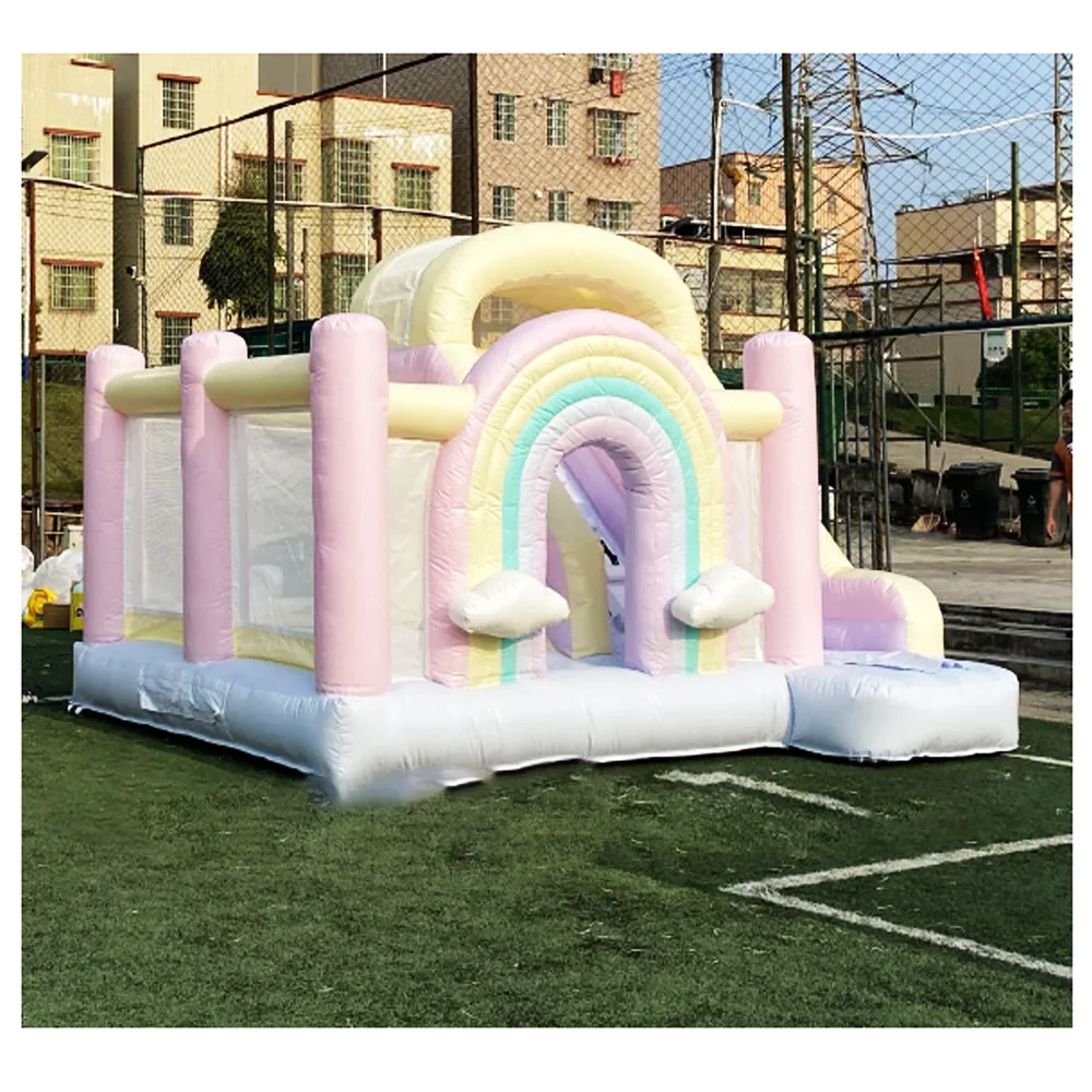 Mini Rainbow Inflatable Bounce House Blow Up PVC Bounce Castle With Side For Kids Party