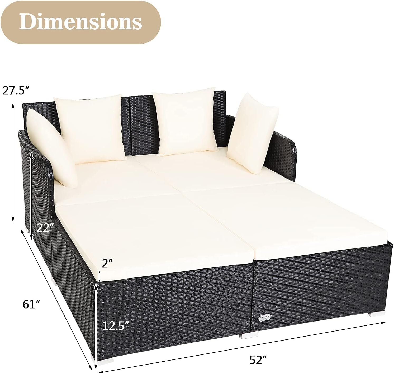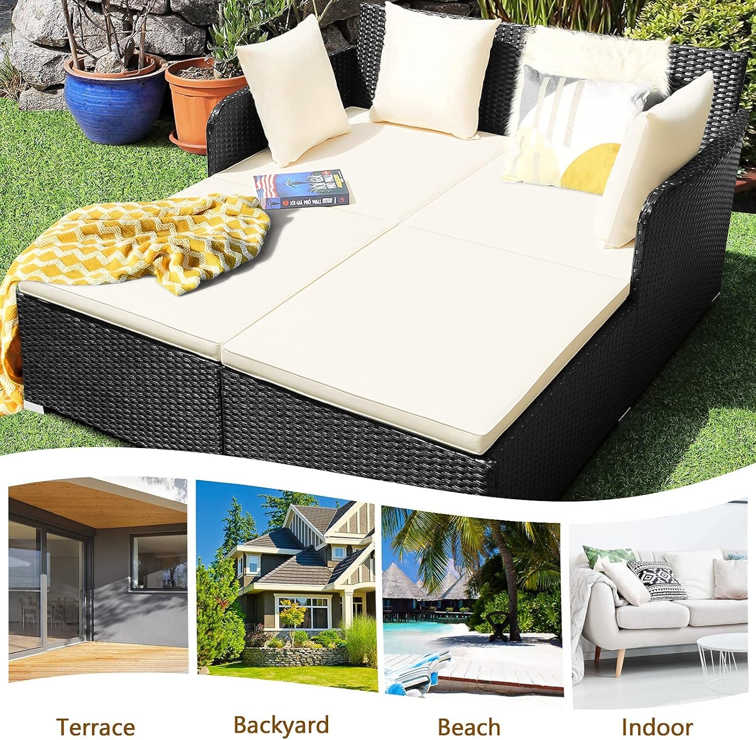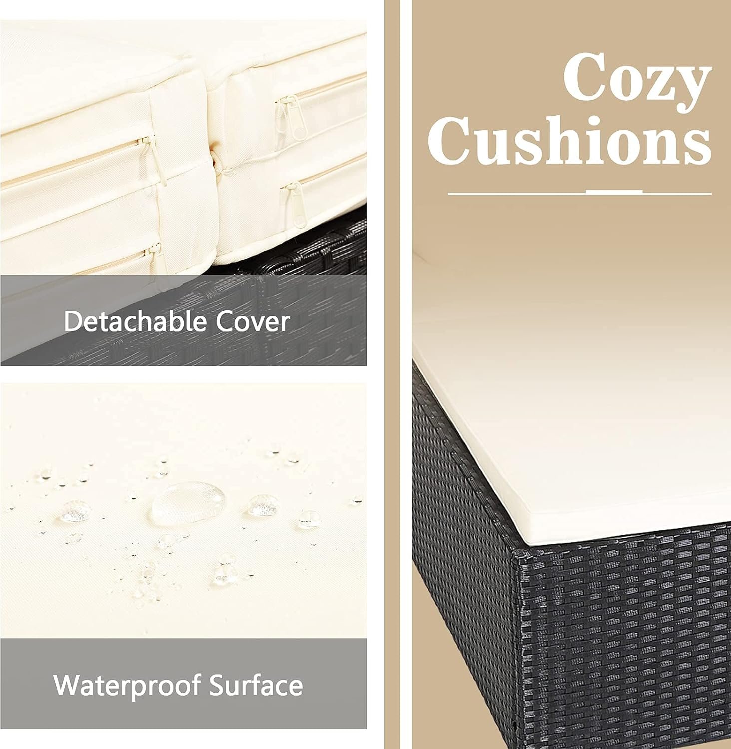 ☁️【Additional Cushions & Pillows】: Equipped with soft pillows and thick cushions, our rattan daybed provides you with ultra softness and comfort. Besides, designed with a zipper, the waterproof cushion cover can be quickly removed and cleaned.