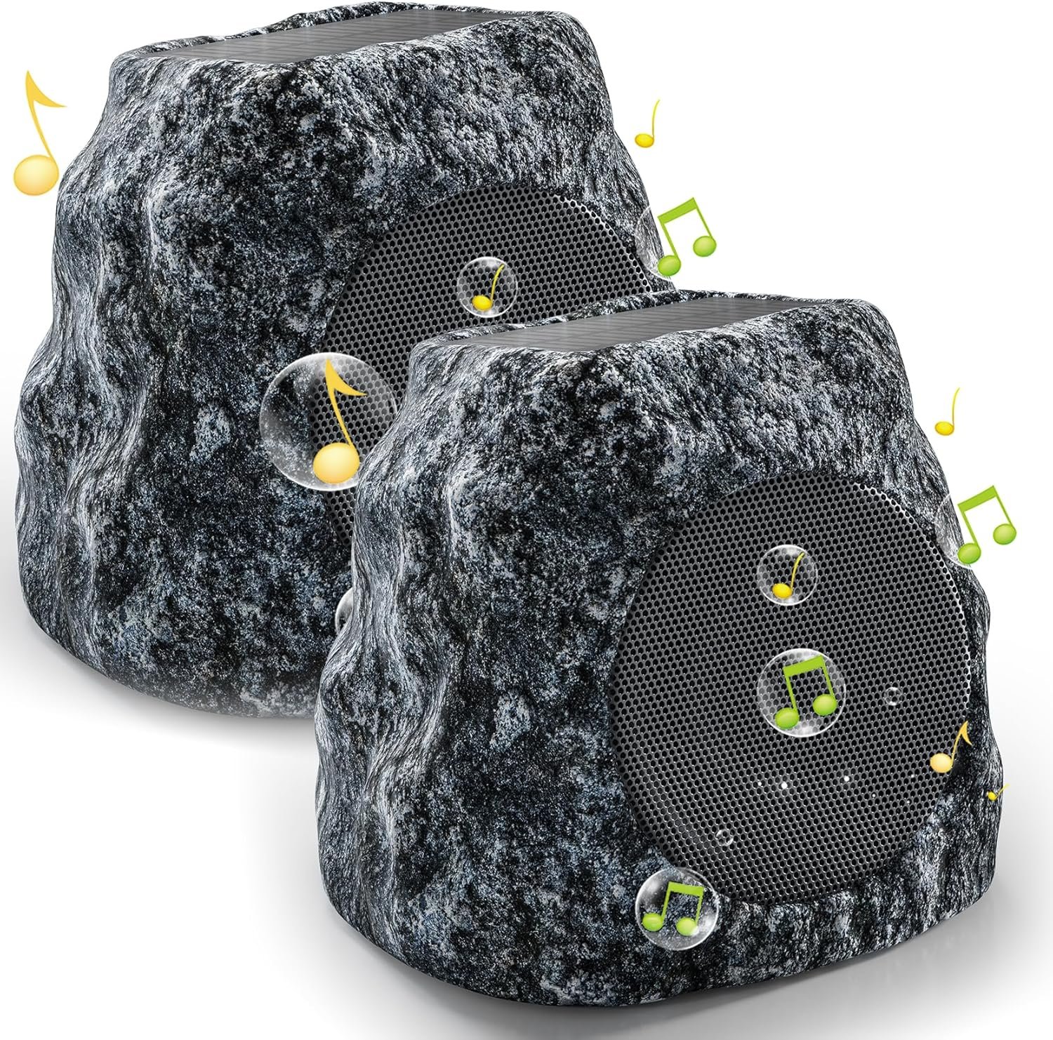 Outdoor Rock Speaker 60W Deep Bass Multi-Sync up to 100 Speakers Auto-Pairing, IPX7 Waterproof Solar-Powered Bluetooth Speaker Perfect for Pool, Garden, Patio, Ideal for Music Entertainers – 2 Pack