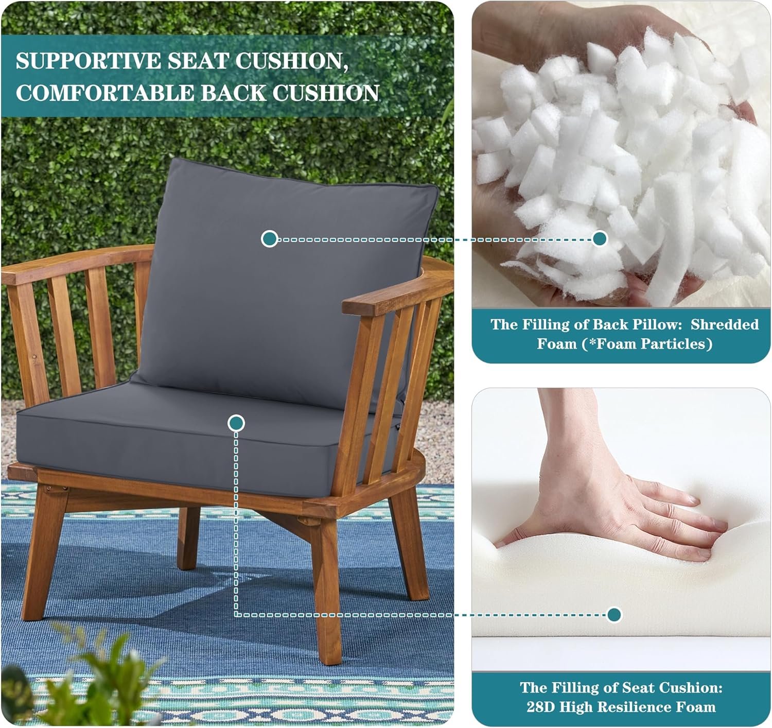 Double-side Waterproof and Stain-Resistant: Comcaver outdoor seat and backrest cushion set is crafted from premium waterproof materials, ensuring it remains unaffected by rain or accidental spills. The stain-resistant fabric makes it incredibly easy to clean,allowing you to maintain its pristine appearance with minimal effort. Whether it’s a sudden downpour or aspilled drink, this cushion is designed to withstand the elements and keep looking great.