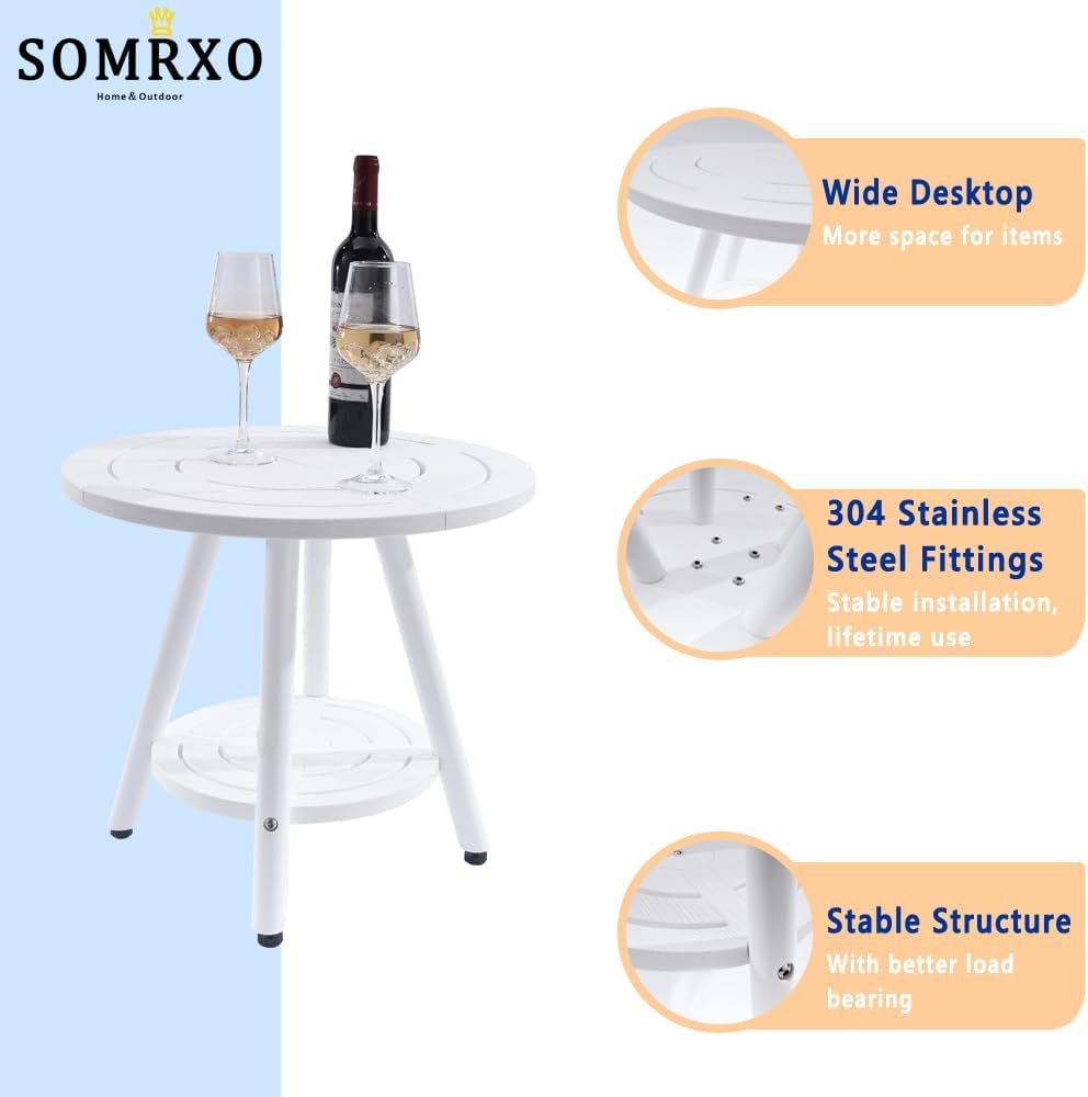 Versatile for Any Outdoor Space:Perfect for patios, poolside, decks, or fire pits. The sleek white round table elevates your outdoor space with timeless appeal