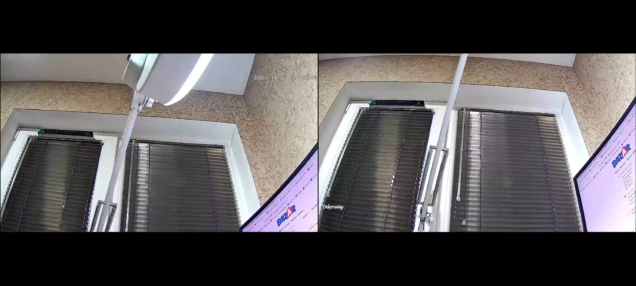 – Two video screens in the APP. The first screen is PTZ camera, and the second screen is fixed position camera.
