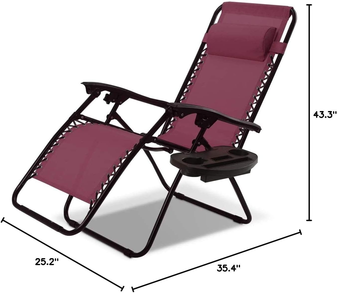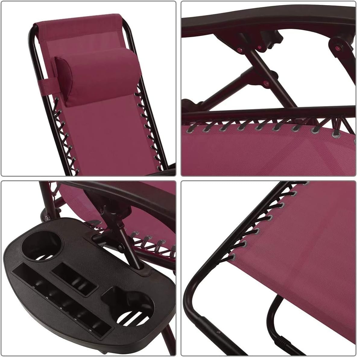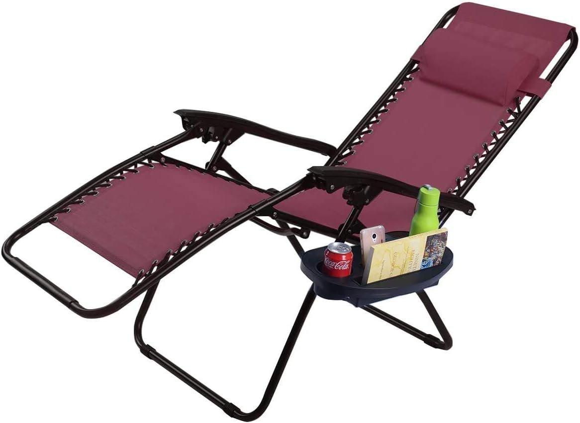 Outdoor Zero Gravity Lounge Chair with Pillow & Utility Tray, Folding Patio Lawn Beach Recliner(Wine)