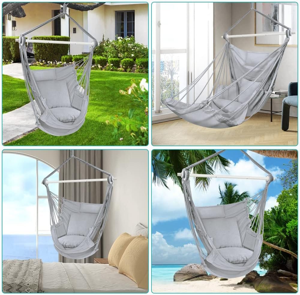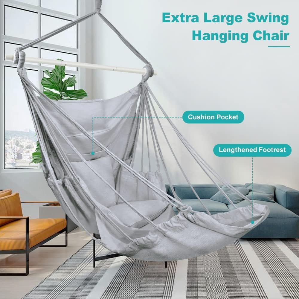 Outerman Hammock Chair, Hanging Chair with 3 Cushions and Foot Rest Support, Sturdy Metal Spreader Bar Max 440 Lbs, Swing Chair for Bedroom, Indoor & Outdoor, Patio, Porch or Tree(Gray)
