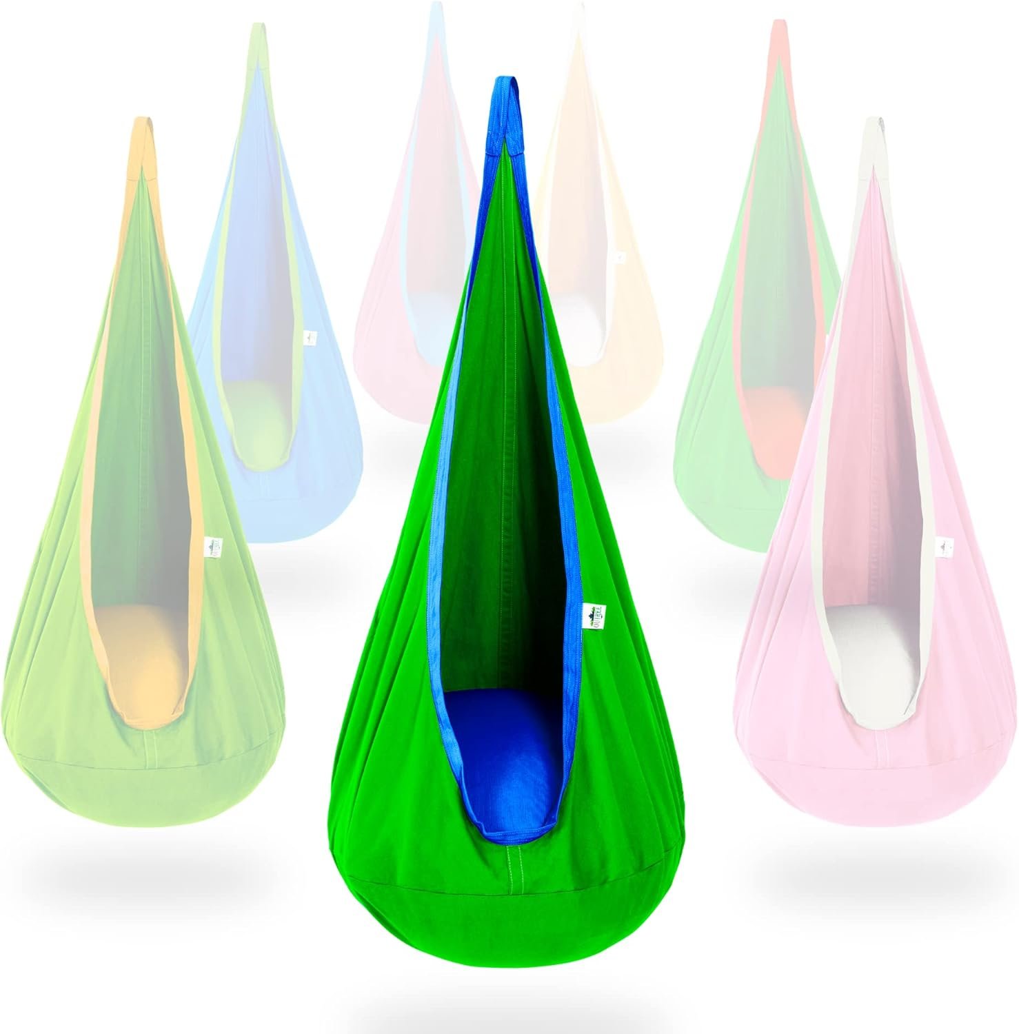 OUTREE Kids Pod Swing Seat, Cotton Child Hammock Swing Chair, Sensory Swing for Indoor and Outdoor Use, Green and Blue
