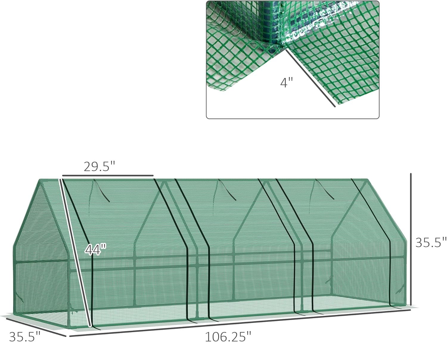 Outsunny 9′ x 3′ x 3′ Portable Mini Greenhouse Outdoor Garden with Large Zipper Doors and Water/UV PE Cover, Green