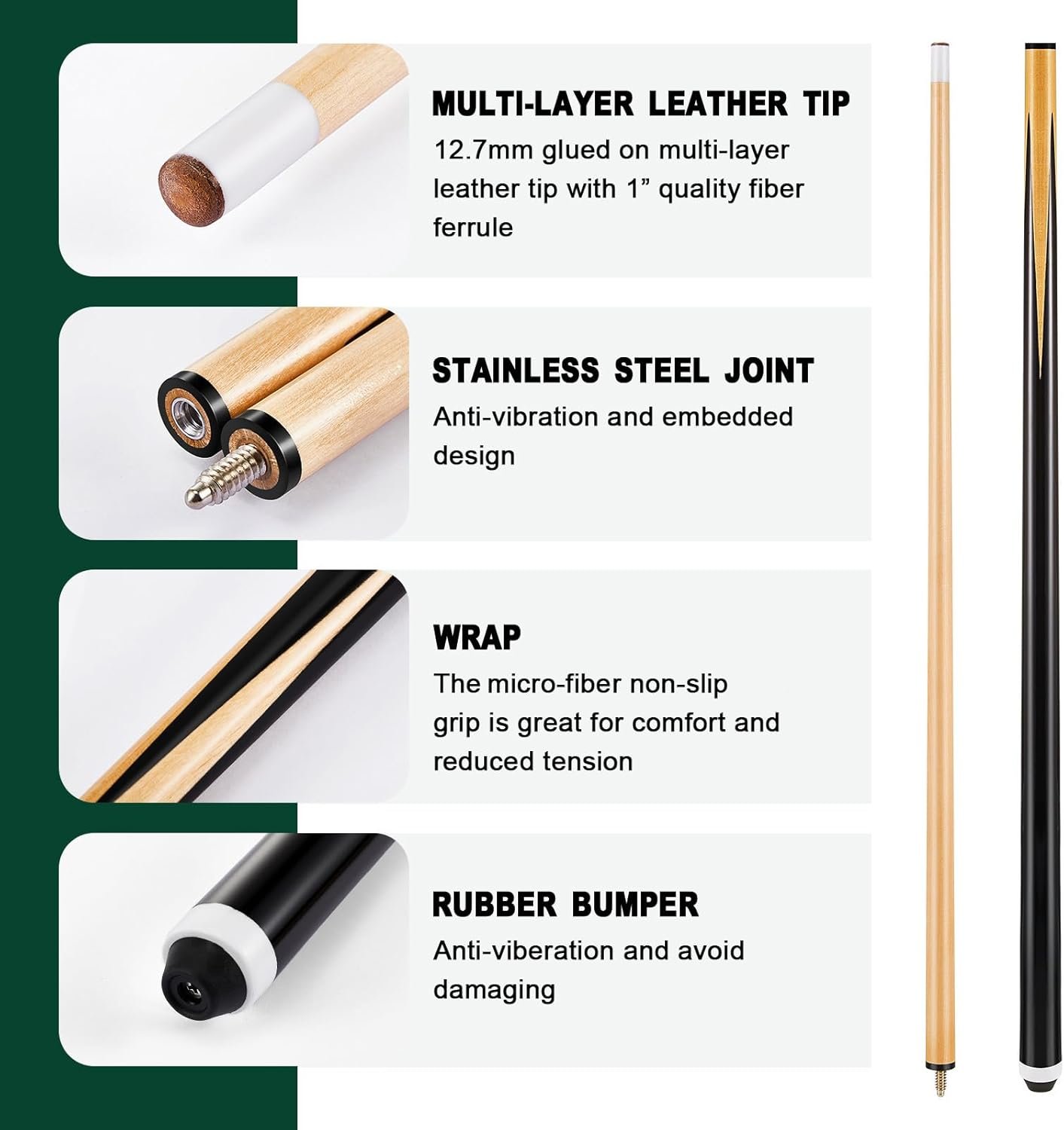 Trusted Material: this pool cue balls set is composed of quality resin, smooth and reliable, and the pool table sticks are made of quality white wood, solid and sturdy, not easy to break, deform or fade, can serve you for a long time