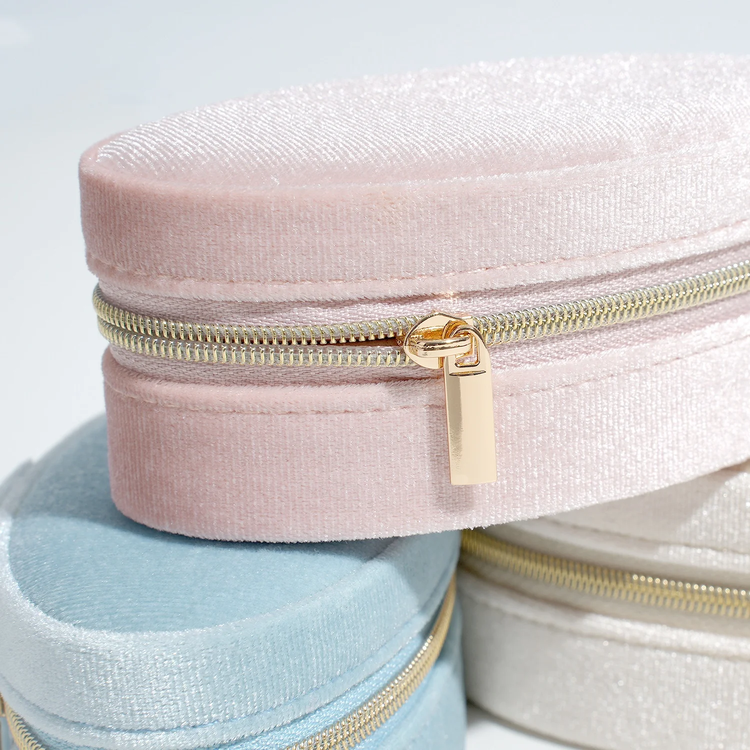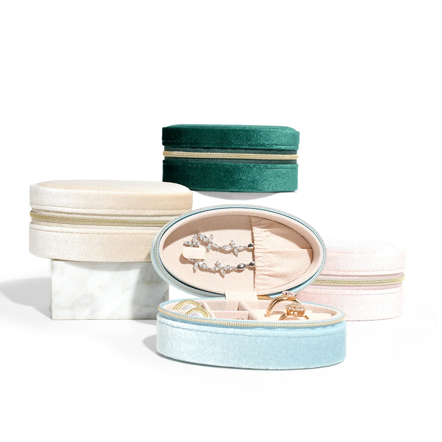 Oval Velvet Jewelry Box Vintage Mini Portable Ring Earrings Necklace Storage Display Box Travel Zipper Jewelry Packaging Box