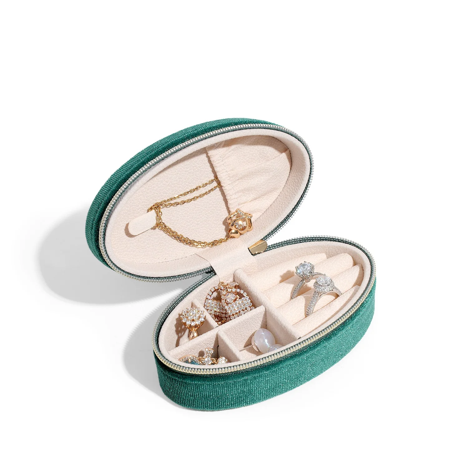 2 reviews for Oval Velvet Jewelry Box Vintage Mini Portable Ring Earrings Necklace Storage Display Box Travel Zipper Jewelry Packaging Box