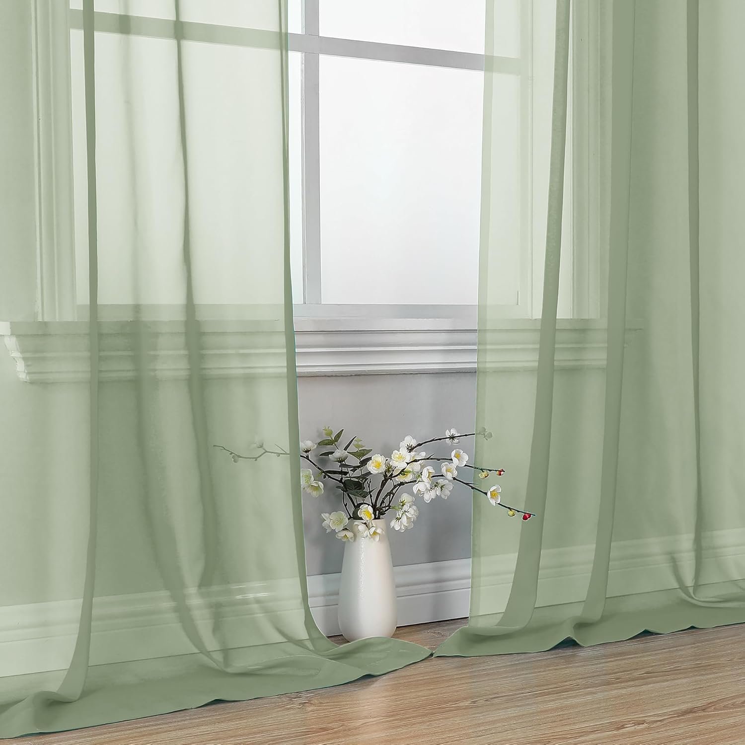 OVZME Bedroom Curtains 2 Panel Sets 84″ Inch Length – Transparent Light Weight Soft Window Treatment Panels for Study Room/Living Room/Guest Room, Sage Green, Per Panel W42 X L84 inches