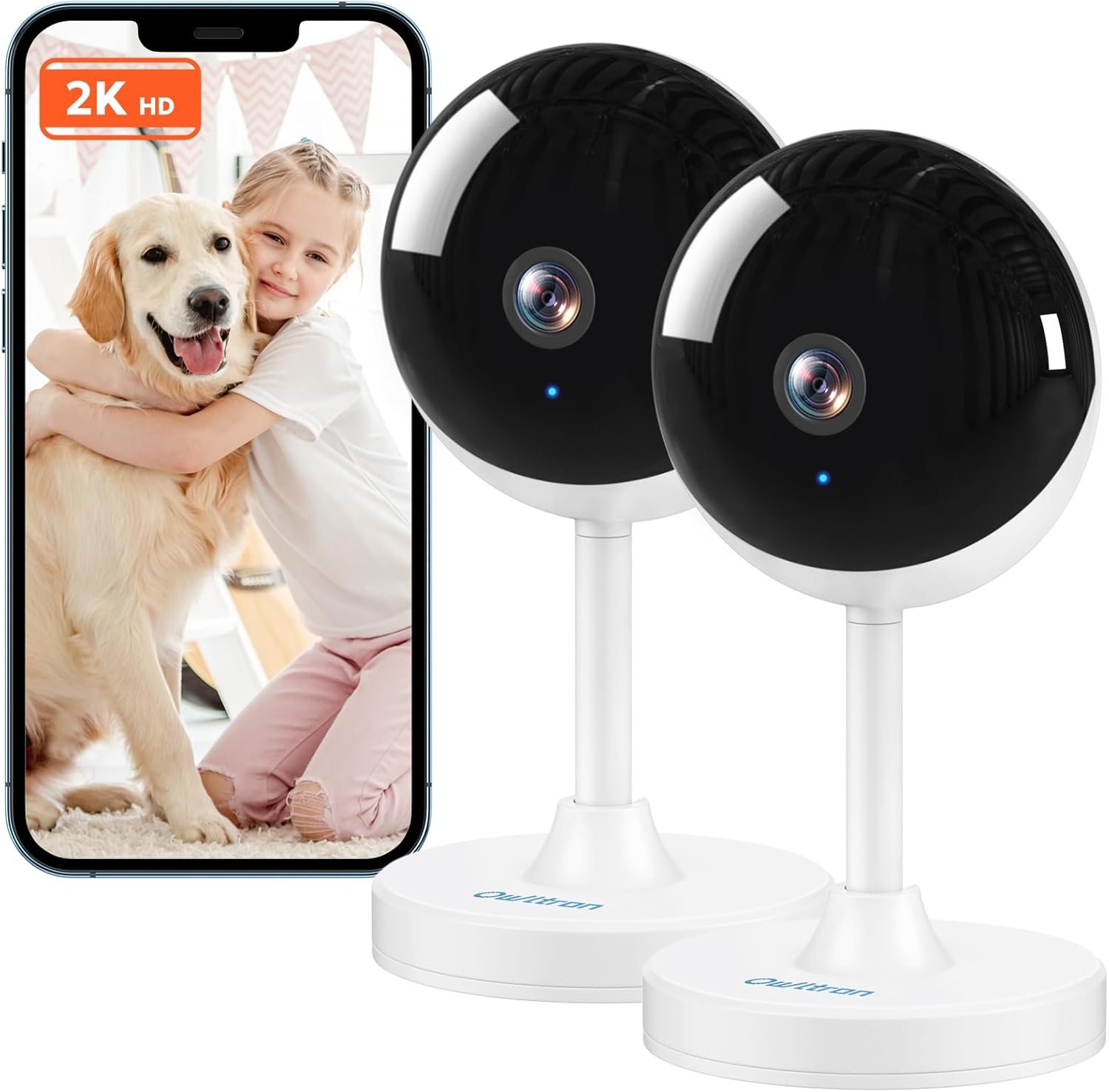 owltron Indoor Security Camera, 2K Cameras for Home Security with Motion Detection, Pet Cam & Baby Monitor with Night Vision, 2.4 GHz WiFi Two-Way Talk, Cloud/SD Storage, Compatible with Alexa