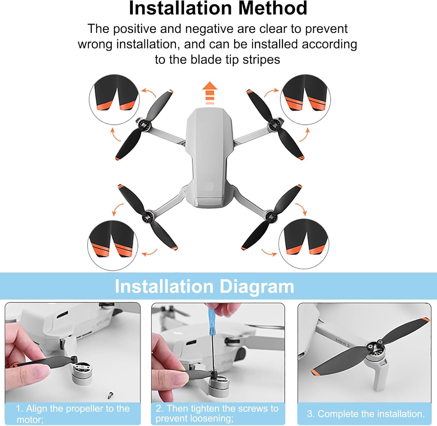 🛫『Mini 2 Propeller』 The drone propeller blades for dji mini 2 se is light in weight, and the single-piece propeller is only 0.7g / 0.02ounce. Good performance, durable, will not add flight burden to the drone