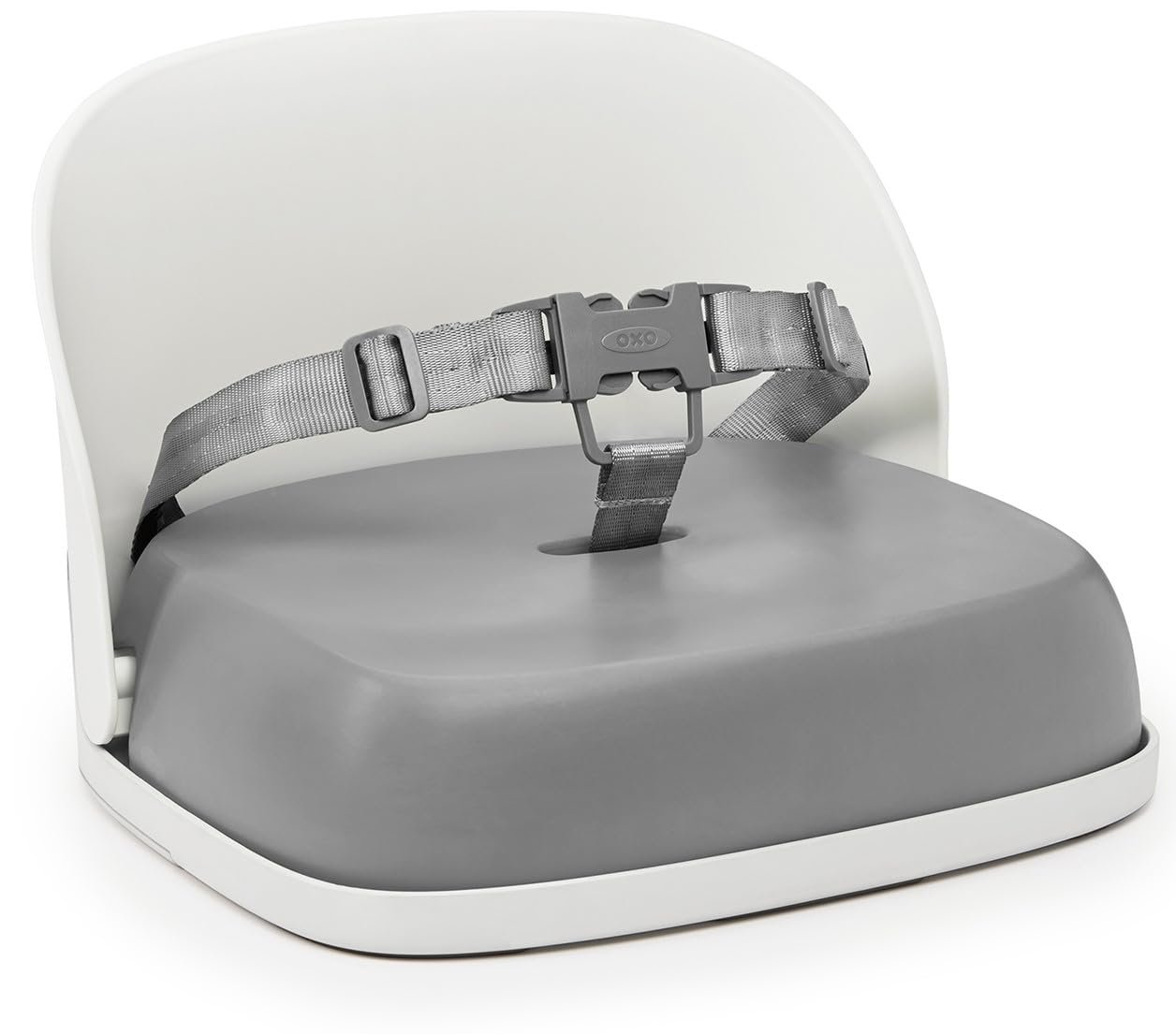 Boosts tots from 15 months up to the perfect table height on any grown-up chair.Booster folds with the push of a button and straps are removable when your tot becomes a big kid (3 plus, up to 70 lbs)