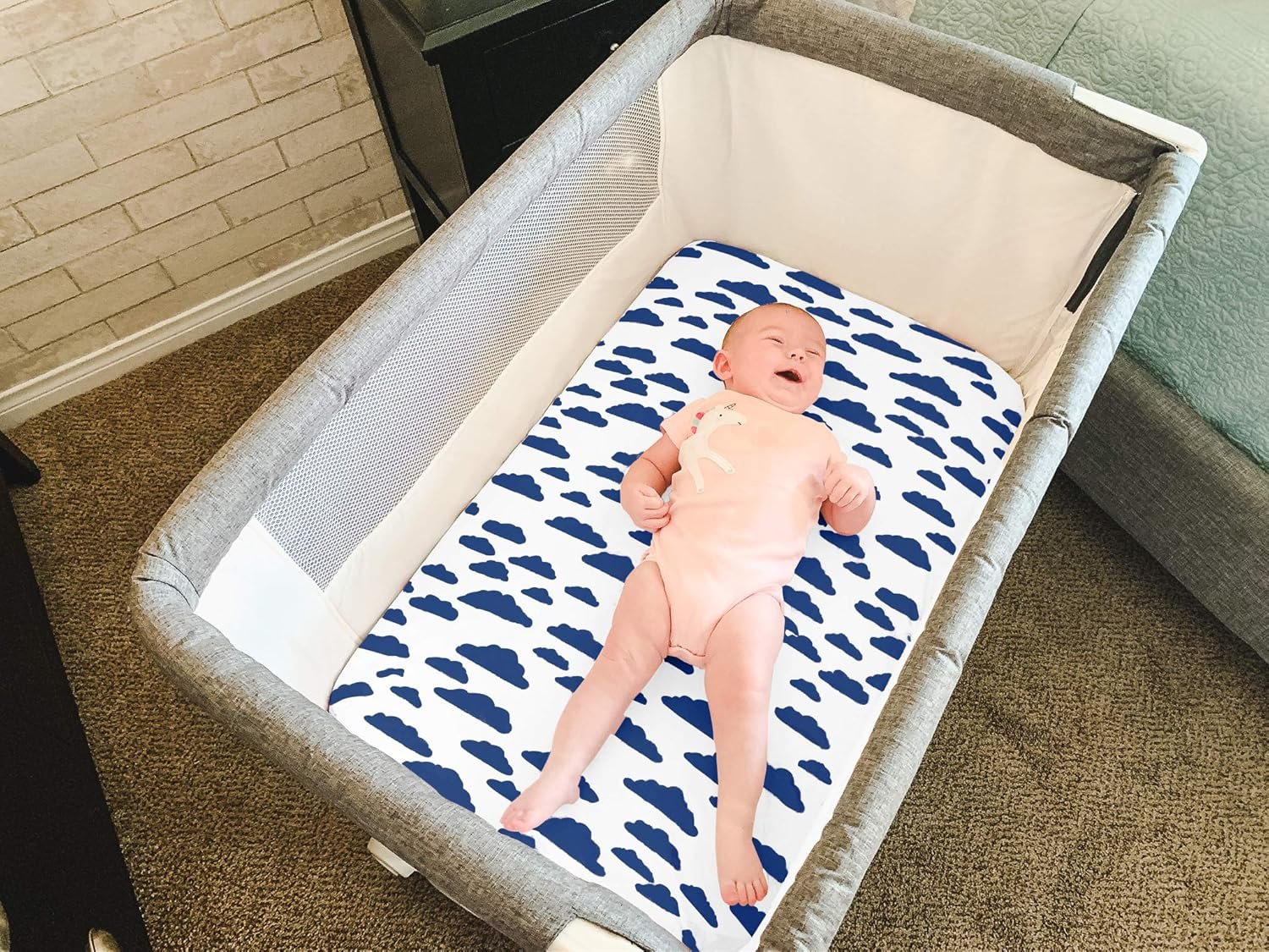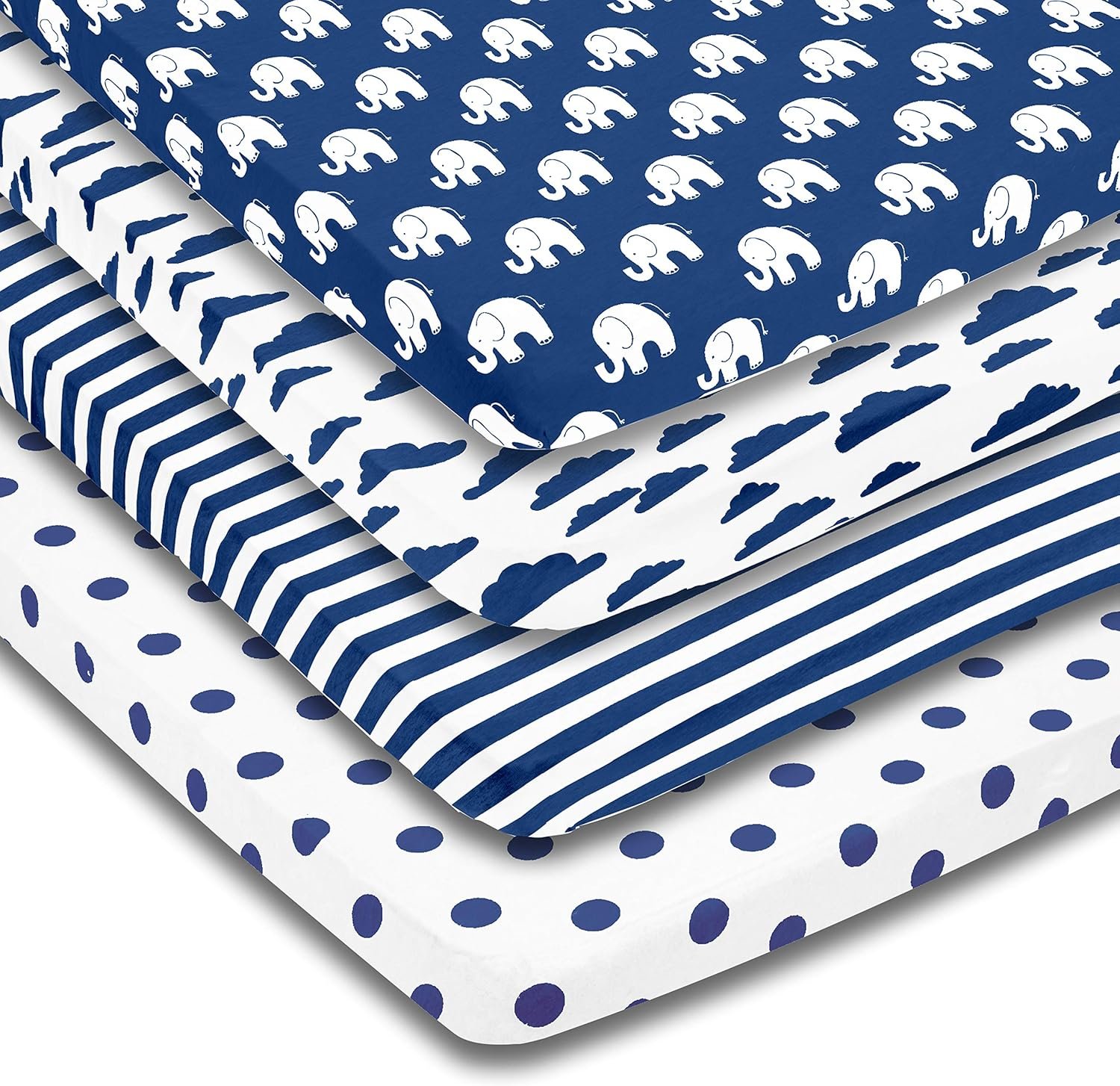 Pack n Play Sheets – Premium Pack and Play Sheet 4 Pack – 100% Super Soft Jersey Knit Cotton Playard Mattress Portable Playpen Fitted Play Yard Mini Crib Sheet for Boy (24 x 38 x 5)