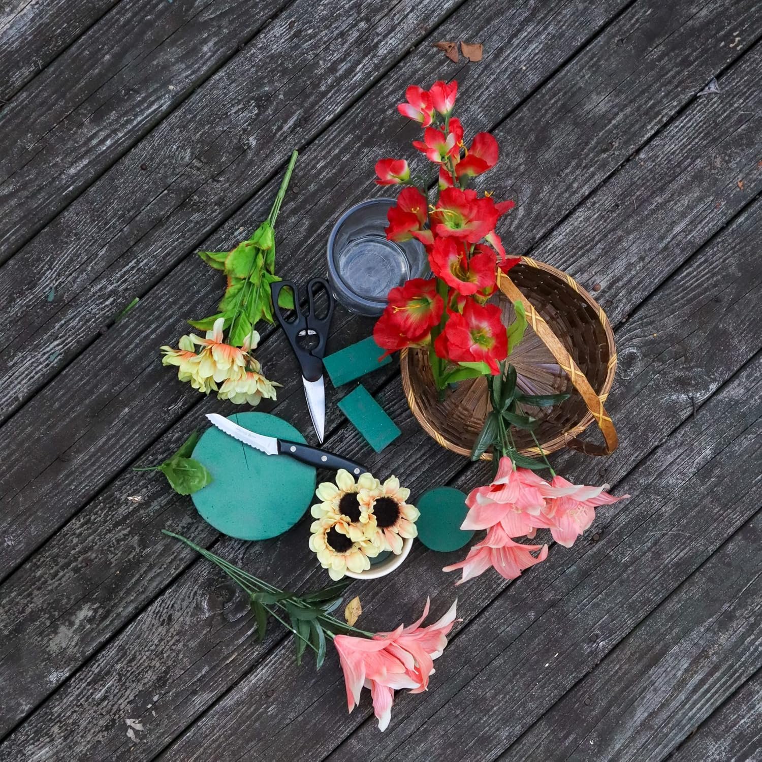 Let It Sink In: Forcing the florist foam into the water creates air pockets which prevents the normal absorption, causing flowers to dry and die prematurely. So let it soak naturally and use after it turns dark green