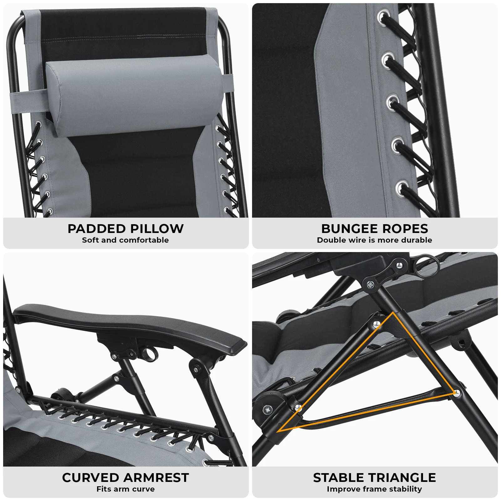 ã€ADJUSTABLE & FOLDABLE】This foldable lounger chair can be adjusted to any position from 0-170 degrees. The product can be set at different angles as required in order to achieve the full weightlessness effect. So that you feel more comfortable sitting or lying down, the sophisticated ergonomic design gives you the best experience.
