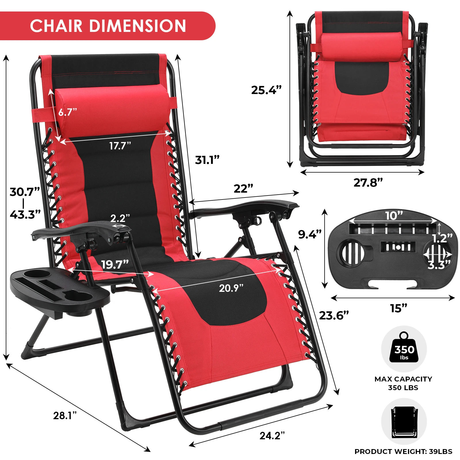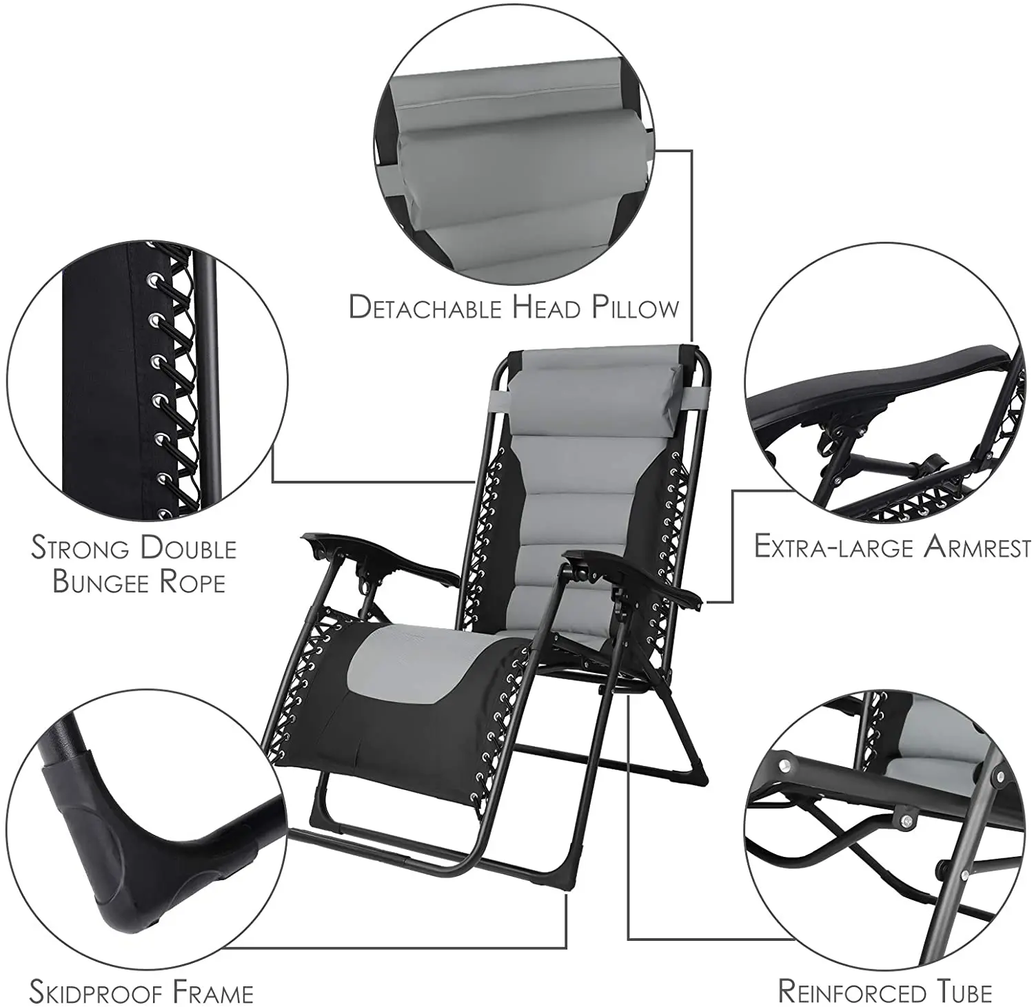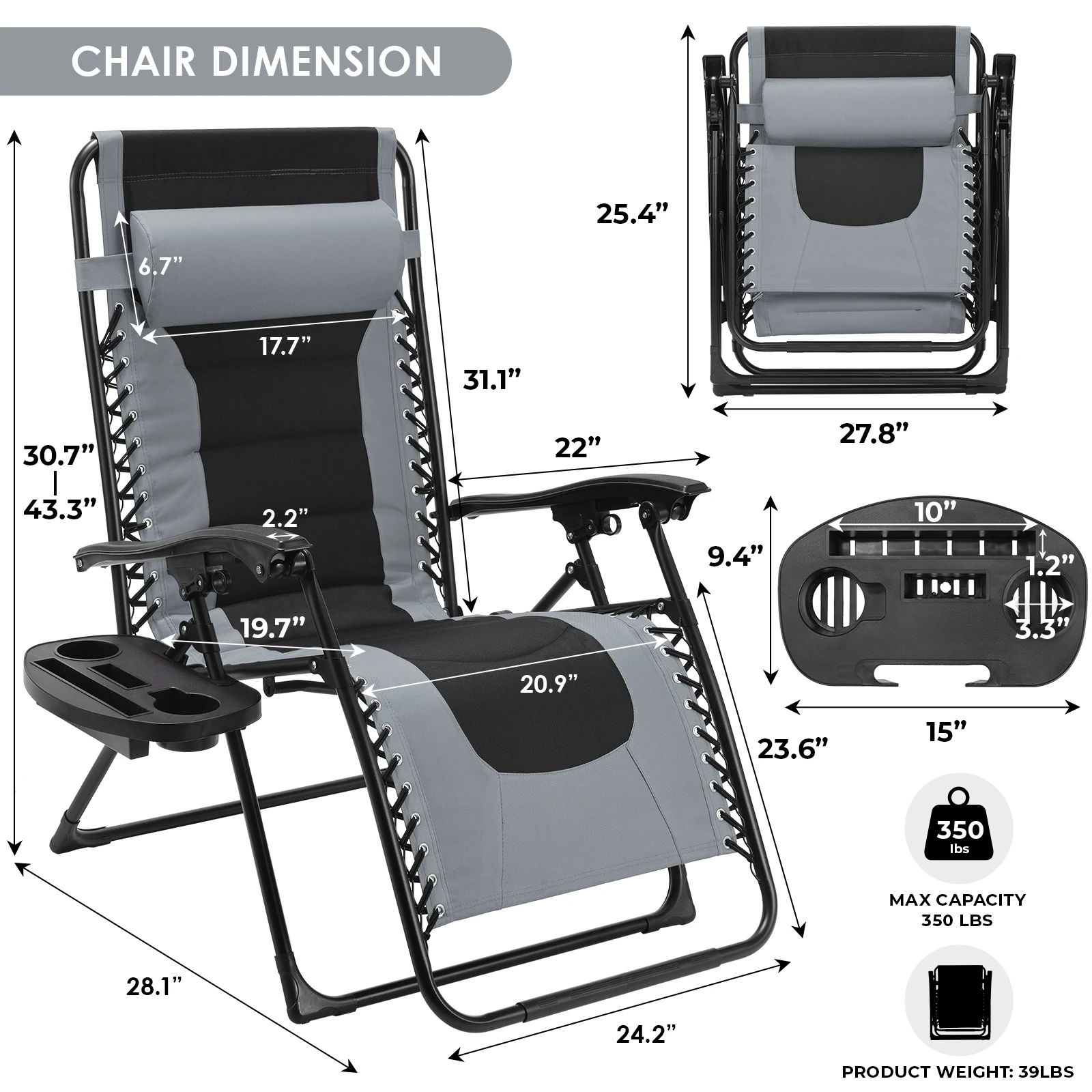 ã€MULTIFUNCTIONAL USE】The multifunctional deck chair without gravity has a removable cup holder with an extra space for a tablet, mobile phone, drinks or book. It is very suitable for a variety of occasions at home, beaches, and gardens, including patio relaxation, camping, hiking, fishing, and other outdoor activities.